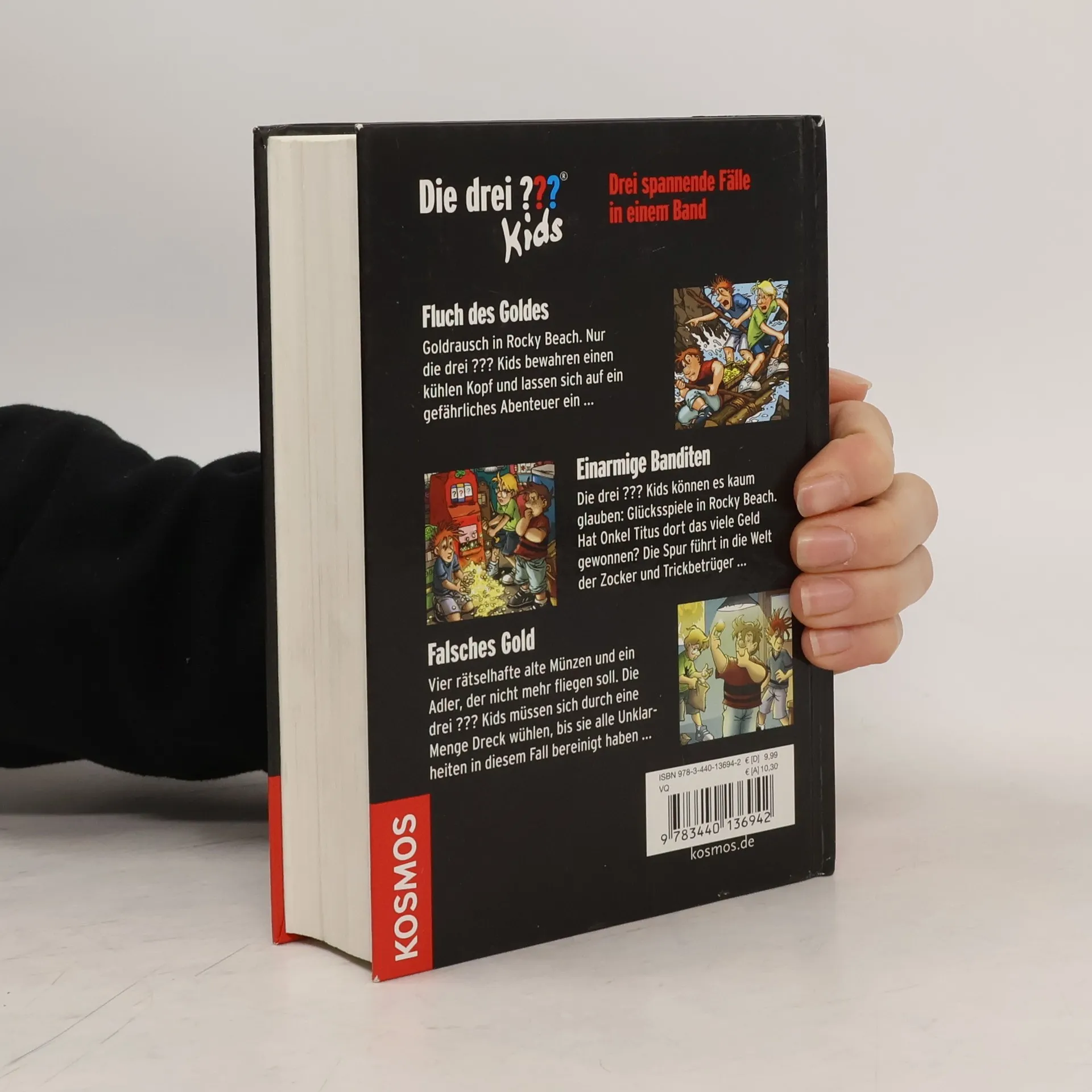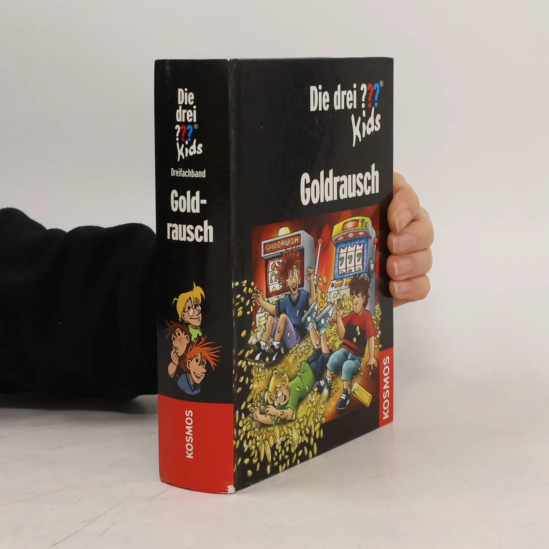 Justus, Peter und Bob beweisen aufs Neue, dass sie jedem Schurken gewachsen sind. Beim Goldrausch in Rocky Beach bewahren sie als einzige einen kühlen Kopf, sie nehmen es mit Zockern und Trickbetrügern auf und lösen den Fall um vier rätselhafte alte Münzen. Der spannende Dreifachband mit den Abenteuern: Fluch des Goldes, Einarmige Banditen, Falsches Gold.