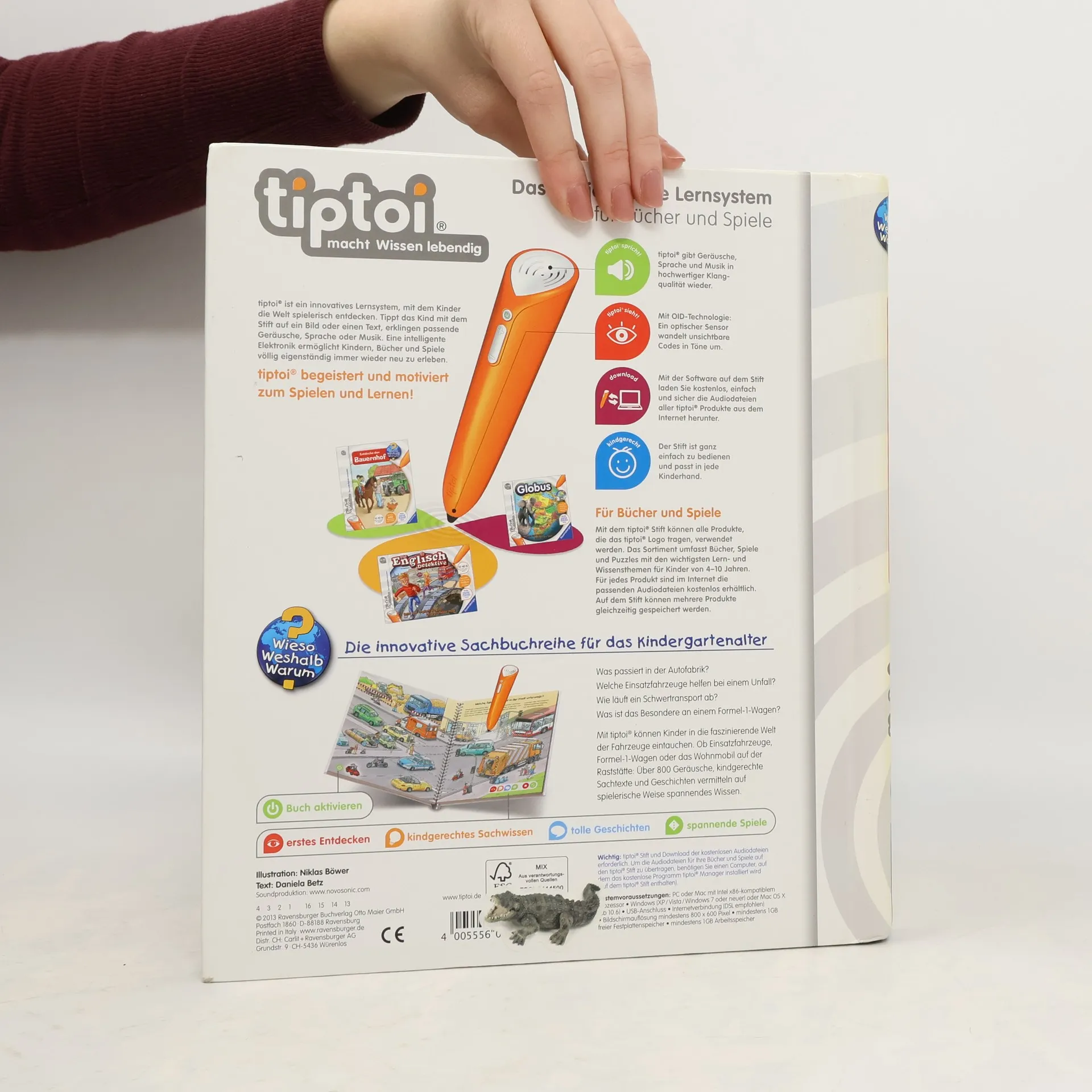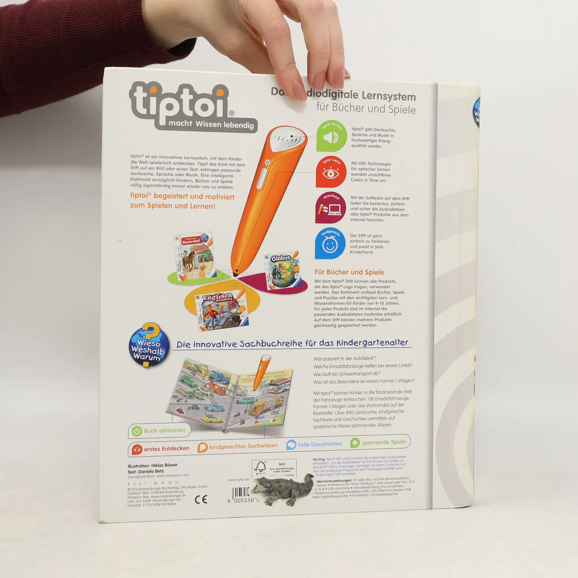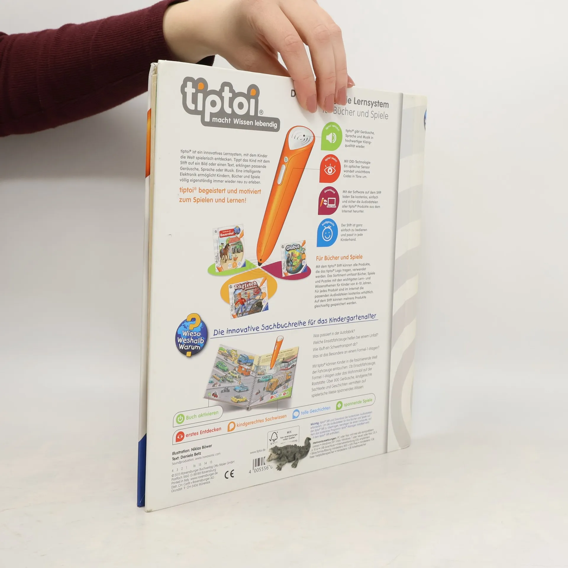 Hier brummt und knattert es: Willkommen in der Welt der Fahrzeuge! Kinder fasziniert alles, was einen Motor hat. Mit tiptoi erfahren sie Wissenswertes über die verschiedenen Fahrzeuge und ihre Aufgaben und lässt sie in die Welt der motorisierten Fahrzeuge eintauchen. Egal ob PKW, Müllwagen, Rettungsfahrzeug, Wohnmobil, Bagger, Schwertransporter oder Formel-1-Rennwagen: auf 8 vollillustrierten Doppelseiten werden die spannendsten Fahrzeuge vorgestellt. Neben kindgerechtem Sachwissen zum Thema vertiefen liebevolle Lieder und Spiele das Gelernte. Was macht der Traktor auf dem Feld? Wann kommt die Feuerwehr? Wie groß wird ein Pony? Die interaktive Sachbuchreihe tiptoi Wieso? Weshalb? Warum? beantwortet wichtige Kinderfragen auf Augenhöhe. Auf den liebevoll illustrierten Seiten tauchen die Kinder in eine Welt ein, die durch zahlreiche authentische Geräusche lebendig wird. Das Sachwissen wird altersgerecht erklärt und ist fachlich geprüft. Die Kinder können sich dank der einfachen und intuitiven Nutzung mit dem tiptoi-Stift das Wissen selbst erschließen. Sie lernen, Zusammenhänge zu begreifen und erfahren spannende Informationen über ihren Alltag und ihre Umwelt. Tolle Geschichten, Lieder und unterhaltsame Spiele laden dabei immer wieder zum selbstständigen Entdecken und Erforschen ein. tiptoi-Stift nicht enthalten. Muss separat erworben werden.