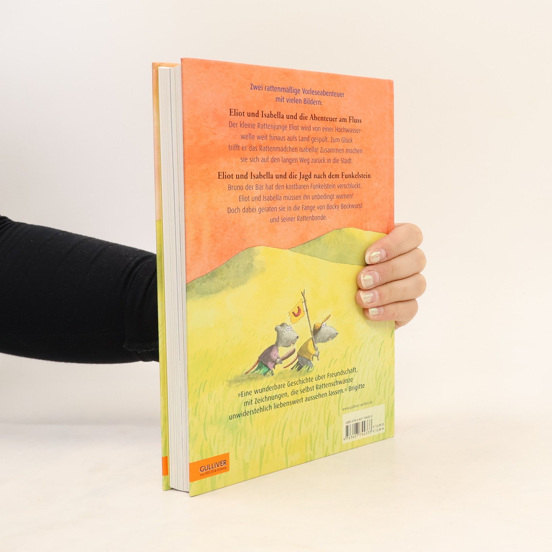 Zwei rattenmäßige Vorleseabenteuer in einem Band! »Eliot und Isabella und die Abenteuer am Fluss«: Der kleine Rattenjunge, Eliot, wird von einer Hochwasserwelle weit hinaus aufs Land gespült. Zum Glück trifft er dort das Rattenmädchen Isabella! Doch als ob der lange Weg zurück in die Stadt nicht schon beschwerlich genug wäre, macht ihnen Bocky Bockwurst auch noch das Leben schwer. »Eliot und Isabella und die Jagd nach dem Funkelstein«: Bruno der Bär hat den kostbaren Funkelstein verschluckt. Eliot und Isabella müssen ihn unbedingt warnen! Doch dabei geraten sie in die Fänge von Bocky und seiner Rattenbande.