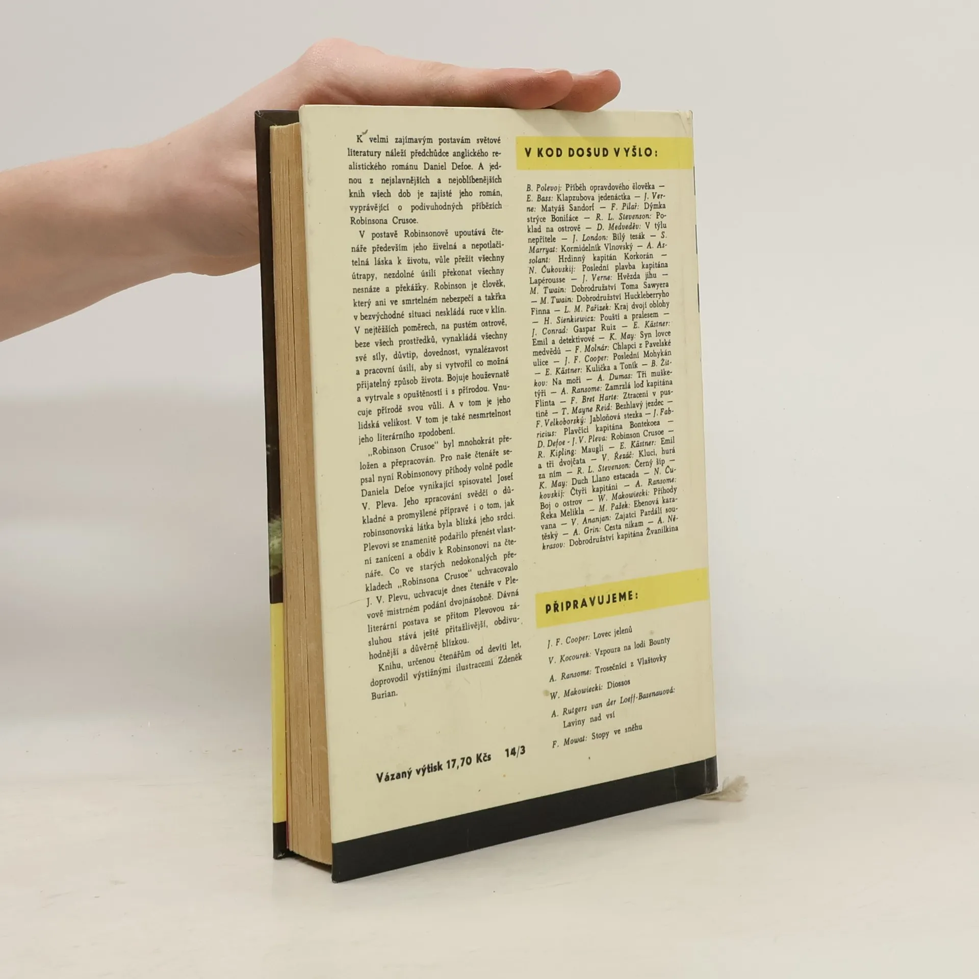 Proslavený román anglického autora Daniela Defoea vyšel od roku 1719 ve stovkách vydání a milionech výtisků. Kniha byla přeložena do desítek jazyků a dočkala se mnoha literárních adaptací i několika filmových zpracování. Mladí čtenáři tentokrát dostávají do rukou moderní verzi původní dvoudílné předlohy. Prožijí se svým hrdinou nejen osudné ztroskotání a všechna dobrodružství, která zažil během dvaceti osmi let na pustém ostrově, ale po jeho šťastném návratu do civilizace se s ním vydají na další, několik let trvající cestu. Putování povede opět přes Robinsonův ostrov v Atlantiku dále na Dálný východ, přes Čínu a Mongolsko do Ruska a od pobřeží Severního ledového oceánu konečně zpět k jeho blízkým do rodné Anglie. Oba díly nového vydání převyprávěla svěžím stylem do současné češtiny Marie Formáčková. Doprovází je velký počet poutavých ilustrací Jiřího Petráčka.