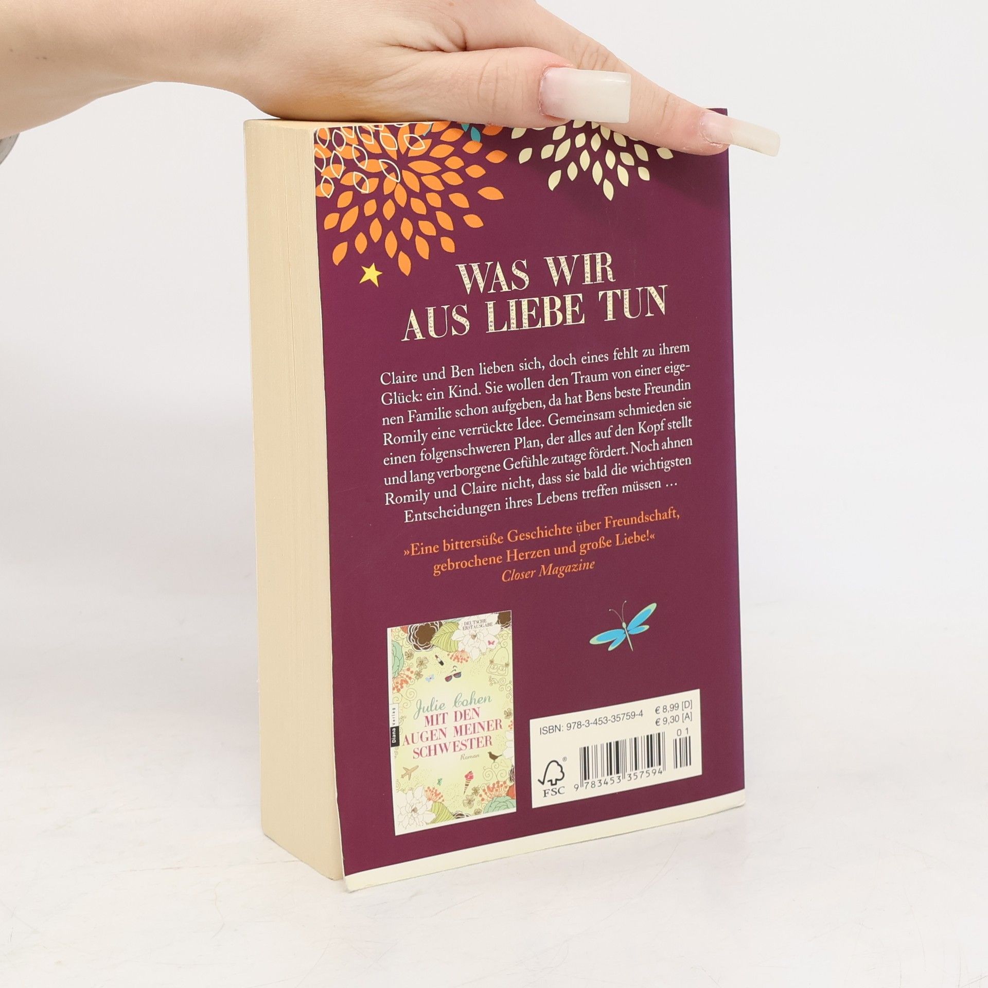 Was wir aus Liebe tunClaire und Ben lieben sich, doch eines fehlt zu ihrem Glück: ein Kind. Sie wollen den Traum von einer eigenen Familie schon aufgeben, da hat Bens beste Freundin Romily eine verrückte Idee. Gemeinsam schmieden sie einen folgenschweren Plan, der alles auf den Kopf stellt und lang verborgene Gefühle zutage fördert. Noch ahnen Romily und Claire nicht, dass sie bald die wichtigsten Entscheidungen ihres Lebens treffen müssen …