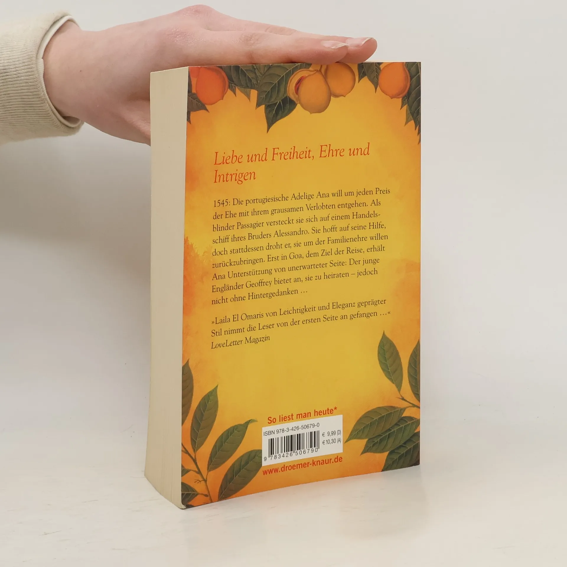 1545: Die portugiesische Adelige Ana will um jeden Preis der Ehe mit ihrem grausamen Verlobten entgehen. Als blinder Passagier versteckt sie sich auf einem Handelsschiff ihres Bruders Alessandro. Sie hofft auf seine Hilfe, doch stattdessen droht er, sie um der Familienehre willen zurückzubringen. Erst in Goa, dem Ziel der Reise, erhält Ana Unterstützung von unerwarteter Seite: Der junge Engländer Geoffrey bietet an, sie zu heiraten – jedoch nicht ohne Hintergedanken … „Laila El Omaris von Leichtigkeit und Eleganz geprägter Stil nimmt die Leser von der ersten Seite an gefangen …“ Loveletter Magazin