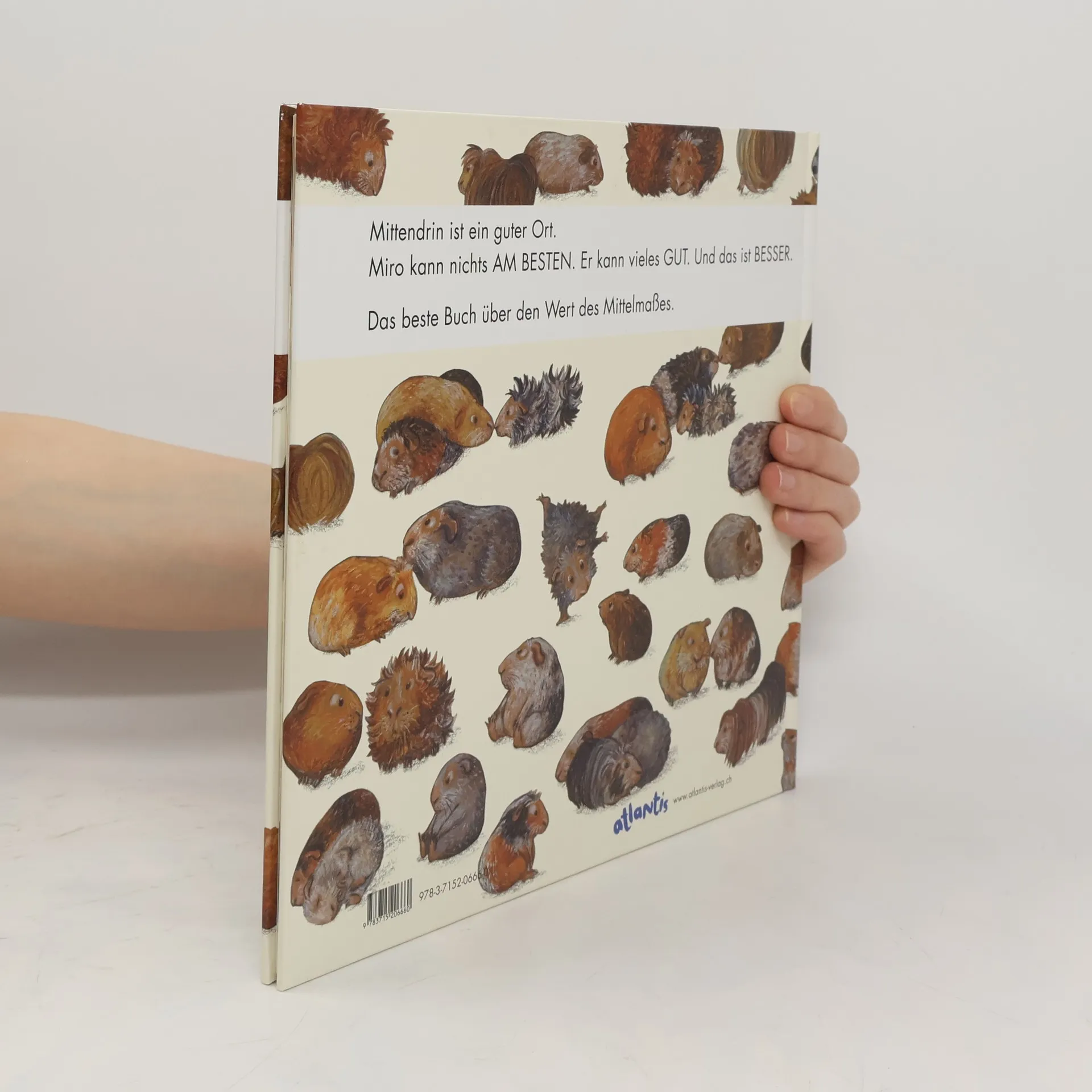 Gewusel links, Gewusel rechts, Gewusel vorn und hinten. Miro Meerschwein ist mittendrin. Wenn er größer wäre, würde er auffallen, wenn er ein Lied pfeifen könnte, auch. Und wenn er wie … Aber da merkt Miro, dass die anderen weg sind! Sie ziehen zum Versammlungsort, wo das »Das beste Meerschwein überhaupt« gewählt werden soll. Unterwegs will sich jeder hervortun: durch Schlauheit, Mut oder große Sprünge. Und erst richtig los geht die Prahlerei vor der Wahl. Da ruft einer: »Keine langen Reden! Wir wählen Miro! Miro will nicht um jeden Preis etwas Besonderes sein. Er tut, was er kann, und so gut er es kann.« Als »Bestes Meerschwein überhaupt« wünscht sich Miro, dass er nicht allein auf dem Gewinnerstein bleiben muss. Er will das Beste überhaupt: Er will mittendrin sein. Gewusel links, Gewusel rechts, Gewusel vorn und hinten: Wir wissen nicht, welches Meerschwein Miro ist. Aber Miro weiß, wer er ist! Ein überdurchschnittliches Buch über die Qualitäten des Mittelmaßes - natürlich von Pauli / Schärer.