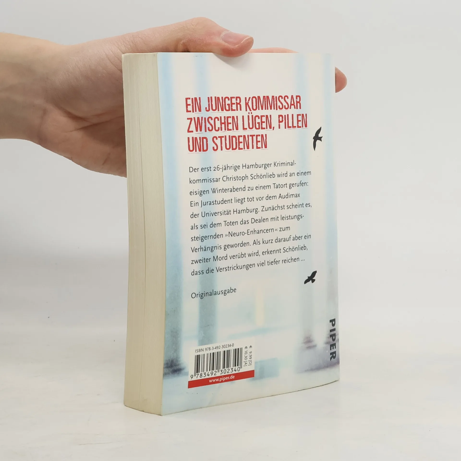 Der erst 26-jährige Hamburger Kriminalkommissar Christoph Schönlieb wird an einem eisigen Winterabend zu einem Tatort gerufen: Ein Jurastudent liegt tot vor dem Audimax der Universität Hamburg. Zunächst scheint es, als sei dem Toten das Dealen mit leistungssteigernden 'Neuro-Enhancern' zum Verhängnis geworden. Als kurz darauf aber ein zweiter Mord verübt wird, erkennt Schönlieb, dass die Verstrickungen, in die beide Tote geraten waren, viel tiefer reichen.
