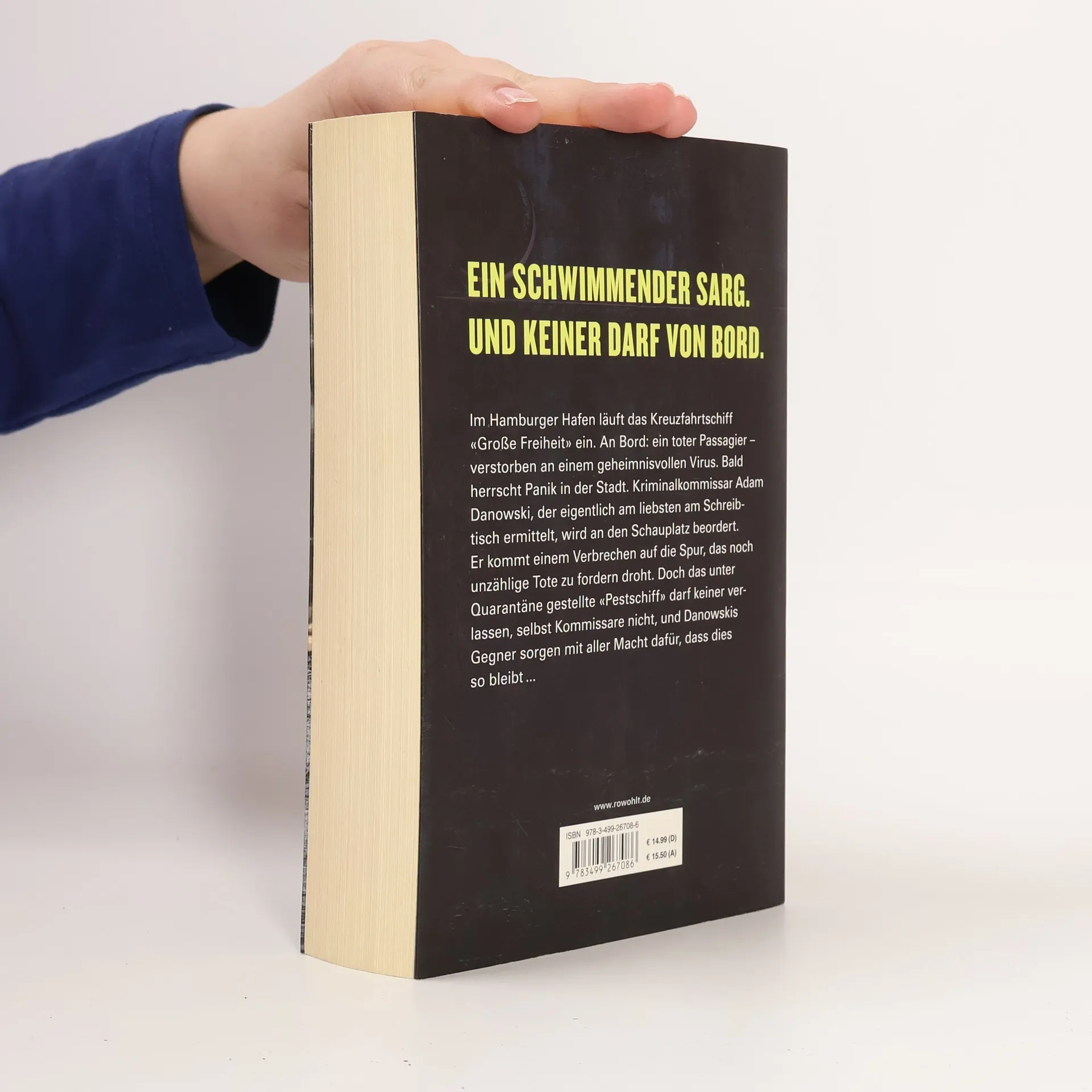 Ein schwimmender Sarg. Und keiner darf von Bord. Im Hamburger Hafen läuft das Kreuzfahrtschiff «Große Freiheit» ein. An Bord: ein toter Passagier – verstorben an einem geheimnisvollen Virus. Bald herrscht Panik in der Stadt. Kriminalkommissar Adam Danowski, der eigentlich am liebsten am Schreibtisch ermittelt, wird an den Schauplatz beordert. Er kommt einem Verbrechen auf die Spur, das noch unzählige Tote zu fordern droht. Doch das unter Quarantäne gestellte «Pestschiff» darf keiner verlassen, selbst Kommissare nicht, und Danowskis Gegner sorgen mit aller Macht dafür, dass dies so bleibt ...