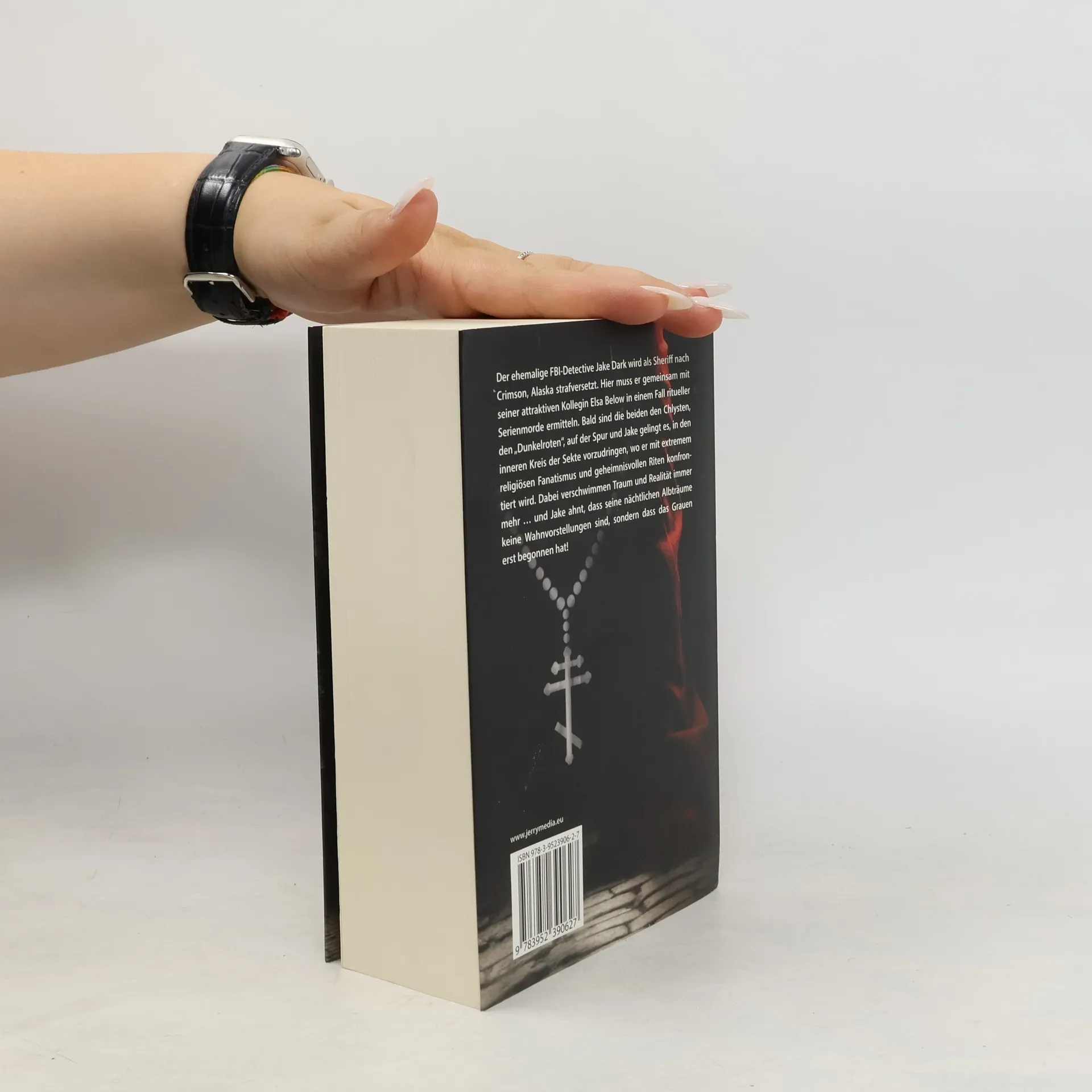 Der ehemalige FBI-Detective Jake Dark wird nach Alaska strafversetzt. Ausgerechnet in der gottverlassenen Siedlung Crimson soll er als Sheriff Dienst tun. Kaum dort angelangt, hört er seltsame Gerüchte und erfährt, dass sein Vorgänger bestialisch ermordert wurde. Kurz darauf findet er eine verstümmelte Leiche, der man einen biblischen Namen ins Fleisch geritzt hat. Weitere Morde mit dem gleichen Ritual folgen. Dark steht vor einem Rätsel. Gemeinsam mit seiner attraktiven Kollegin Elsa Below beginnt er zu ermitteln. Die beiden kommen schon bald auf die Spur der Chlysten, die sich auch als die „Dunkelroten“ bezeichnen. Immer weiter dringt Dark in den inneren Kreis der Sekte vor und stößt auf Fanatismus und geheimnisvolle Riten. Doch je näher er den Mitgliedern kommt, desto mehr verschwimmen Traum und Realität. Und welche Rolle spielt eigentlich die verführerische Elsa? Jake ahnt, dass seine nächtlichen Albträume keine Wahnvorstellungen sind: Das Grauen hat gerade erst begonnen!