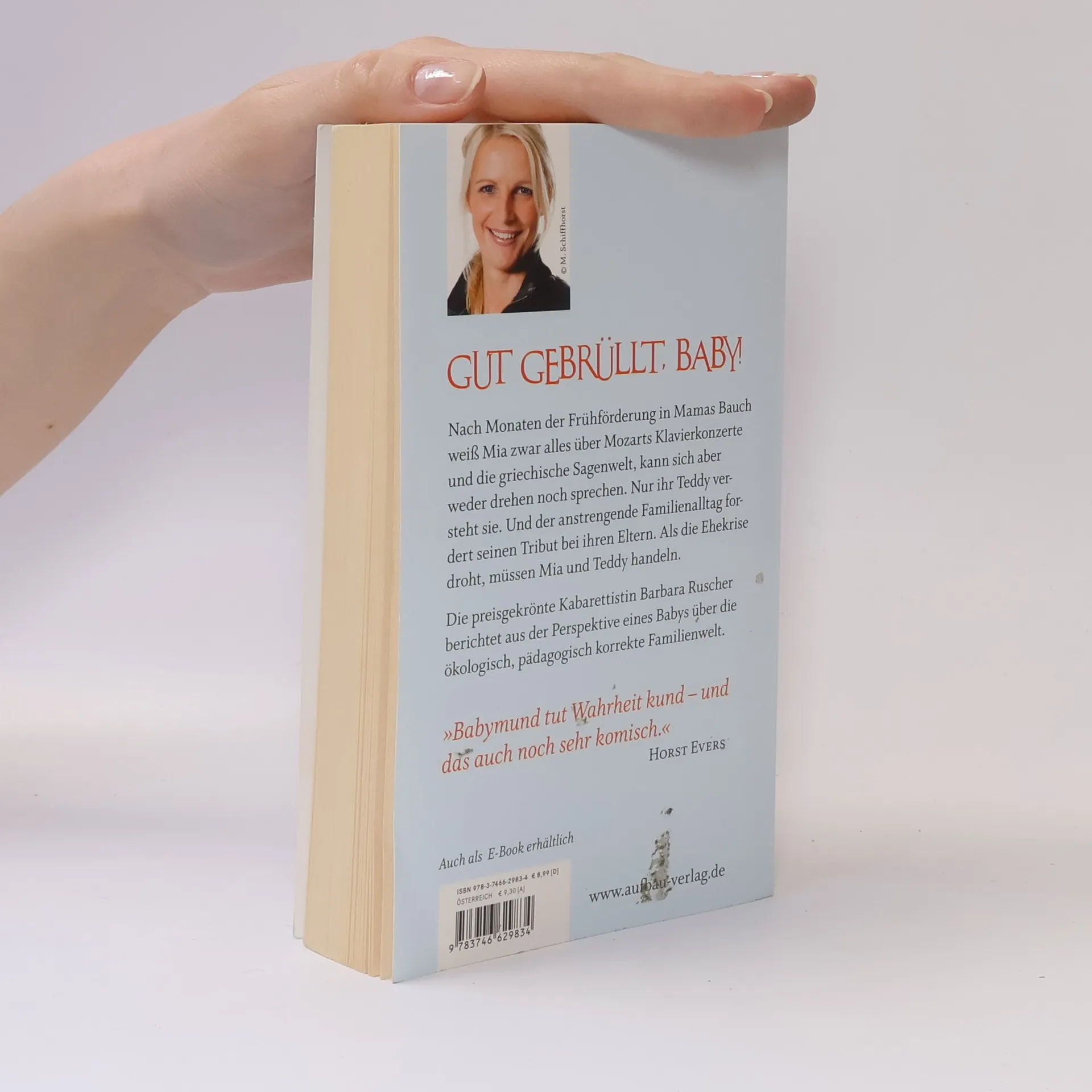 Gut gebrüllt, Baby! Bin noch im Bauch. Draußen schreit eine Frau. Will ihr sagen, mit Schreien erreiche man gar nichts. Jetzt schreit sie MICH an. Heiße wohl PDA. Origineller Name. Wer sich je gefragt hat, was uns unser süßes Baby mit seinem ohrenbetäubenden Brüllen sagen will, findet hier Antworten – und was für welche. Die preisgekrönte Kabarettistin Barbara Ruscher liefert hochkomische Einblicke in Babys Sicht der biologisch korrekten Familienwelt. Nach Monaten der Frühförderung in Mamas Bauch kennt Baby Mia zwar Mozarts Frühwerk, aber leider kann sie sich weder drehen noch sprechen. Nur ihr Teddy versteht sie. Und während Mia die ersten Meilensteine des Lebens – erstes Lächeln, erstes Mal Mama und Papa beim Sex stören, erstes Mal die olle Trulla anpinkeln, die Papa schöne Augen macht – hinter sich lässt, fordert der anstrengende Familienalltag seinen Tribut von ihren Eltern. Als zwischen Pekip und Biobrei die Ehekrise droht, müssen Mia und Teddy handeln. „Bei aller Vorsicht vor schreibenden Comediennes: Dieses Machwerk ist ein Kracher! Ein Buch für im Urlaub, im Zug, während langweiliger Meetings und abends im Bett.“ Gerburg Jahnke, Missfits „Kabarett vom Feinsten.“ Kölner Stadtanzeiger