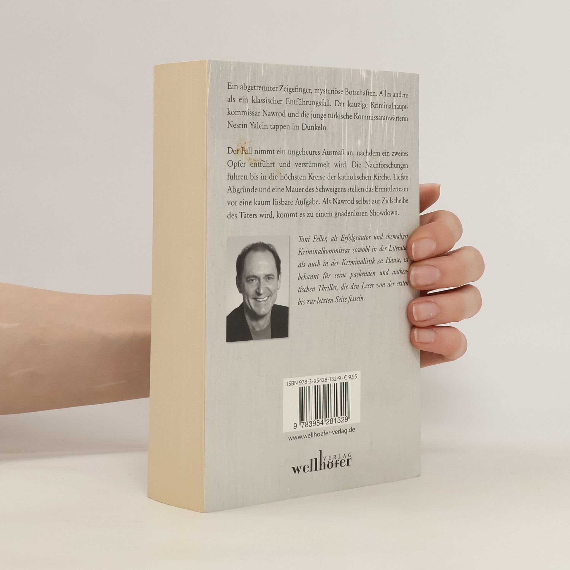 Ein abgetrennter Zeigefinger, mysteriöse Botschaften. Alles andere als ein klassischer Entführungsfall. Der kauzige, aus Stuttgart nach Heidelberg versetzte Kriminalhauptkommissar Nawrod, und die junge türkische Kommissaranwärterin Nesrin Yalcin tappen im Dunkeln. Der Fall nimmt ein ungeheures Ausmaß an, nachdem ein zweites Opfer entführt, verstümmelt und mit dessen Ermordung gedroht wird. Die Nachforschungen führen bis in die höchsten Kreise der katholischen Kirche. Tiefste Abgründe und eine Mauer des Schweigens stellen das Ermittlerteam vor eine kaum lösbare Aufgabe. Als Kommissar Nawrod selbst zur Zielscheibe des Täters wird, kommt es zu einem gnadenlosen Showdown. Toni Feller, als ehemaliger Kriminalkommisar und Erfolgsautor sowohl in der Literatur, als auch in der Kriminalistik zu Hause, ist bekannt für seine packenden und authentischen Thriller, die den Leser von der ersten bis zur letzten Seite fesseln.