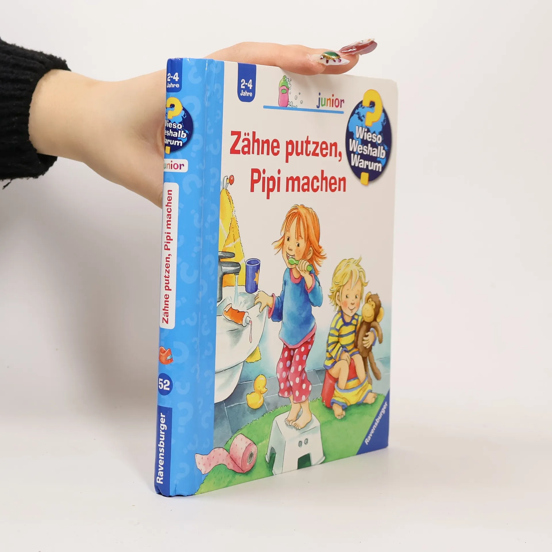 Das Abenteuer Badezimmer kann beginnen: Warum musst du Hände waschen? Wie putzt du dir die Zähne? Wann gehst du aufs Töpfchen? Hier lernen Kinder die tägliche Routine im Badezimmer spielerisch kennen. Gleichzeitig gibt das Buch klare und verständliche Antworten darauf, warum Körperpflege so wichtig ist. So verlieren Kinder die Scheu vor Seife und Schaum und aus Badetagen werden Lieblingstage! Wieso? Weshalb? Warum? junior Die Sachbuchreihe für Kinder von 2-4 Jahren Jeden Tag entdecken Kinder etwas Neues – und haben viele Fragen. Wann kommt die Feuerwehr? Was machen die Tiere im Winter? Warum muss ich Zähne putzen? Die beliebte Sachbuchreihe Wieso? Weshalb? Warum? junior beantwortet die Fragen der Kinder auf Augenhöhe. Sie beleuchtet unterschiedlichste Themen aus ihrer Alltags- und Interessenswelt altersgerecht und mit viel Liebe zum Detail. Die Reihe ist speziell auf kleine Hände und die Bedürfnisse der Kleinsten angepasst. Klare und liebevolle Bilder, kurze Sachtexte sowie handliche Klappen, die Bewegungen veranschaulichen und überraschende und lustige Einblicke gewähren, ermöglichen Kindern, sich ihre Themen selbst zu erschließen. Der Spaß am eigenhändigen Entdecken, die liebevolle Umsetzung und die hochwertige Ausstattung garantieren langanhaltende Freude an jedem Buch.