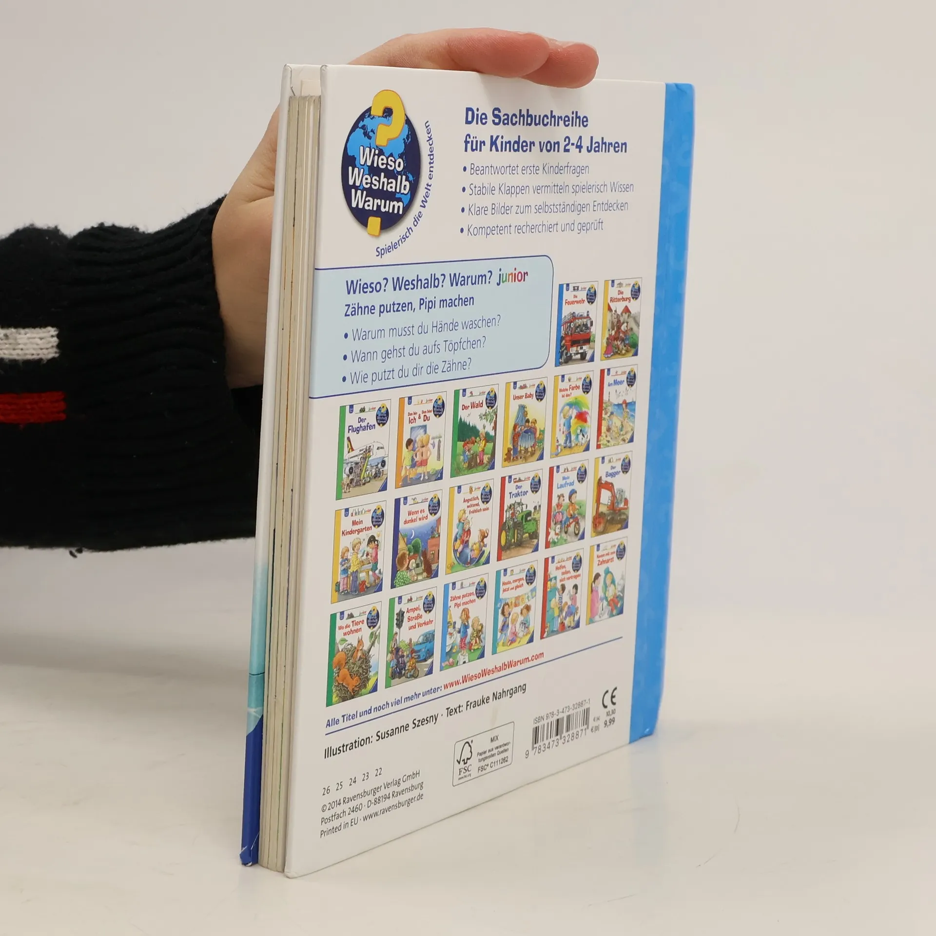 Das Abenteuer Badezimmer kann beginnen: Warum musst du Hände waschen? Wie putzt du dir die Zähne? Wann gehst du aufs Töpfchen? Hier lernen Kinder die tägliche Routine im Badezimmer spielerisch kennen. Gleichzeitig gibt das Buch klare und verständliche Antworten darauf, warum Körperpflege so wichtig ist. So verlieren Kinder die Scheu vor Seife und Schaum und aus Badetagen werden Lieblingstage! Wieso? Weshalb? Warum? junior Die Sachbuchreihe für Kinder von 2-4 Jahren Jeden Tag entdecken Kinder etwas Neues – und haben viele Fragen. Wann kommt die Feuerwehr? Was machen die Tiere im Winter? Warum muss ich Zähne putzen? Die beliebte Sachbuchreihe Wieso? Weshalb? Warum? junior beantwortet die Fragen der Kinder auf Augenhöhe. Sie beleuchtet unterschiedlichste Themen aus ihrer Alltags- und Interessenswelt altersgerecht und mit viel Liebe zum Detail. Die Reihe ist speziell auf kleine Hände und die Bedürfnisse der Kleinsten angepasst. Klare und liebevolle Bilder, kurze Sachtexte sowie handliche Klappen, die Bewegungen veranschaulichen und überraschende und lustige Einblicke gewähren, ermöglichen Kindern, sich ihre Themen selbst zu erschließen. Der Spaß am eigenhändigen Entdecken, die liebevolle Umsetzung und die hochwertige Ausstattung garantieren langanhaltende Freude an jedem Buch.
