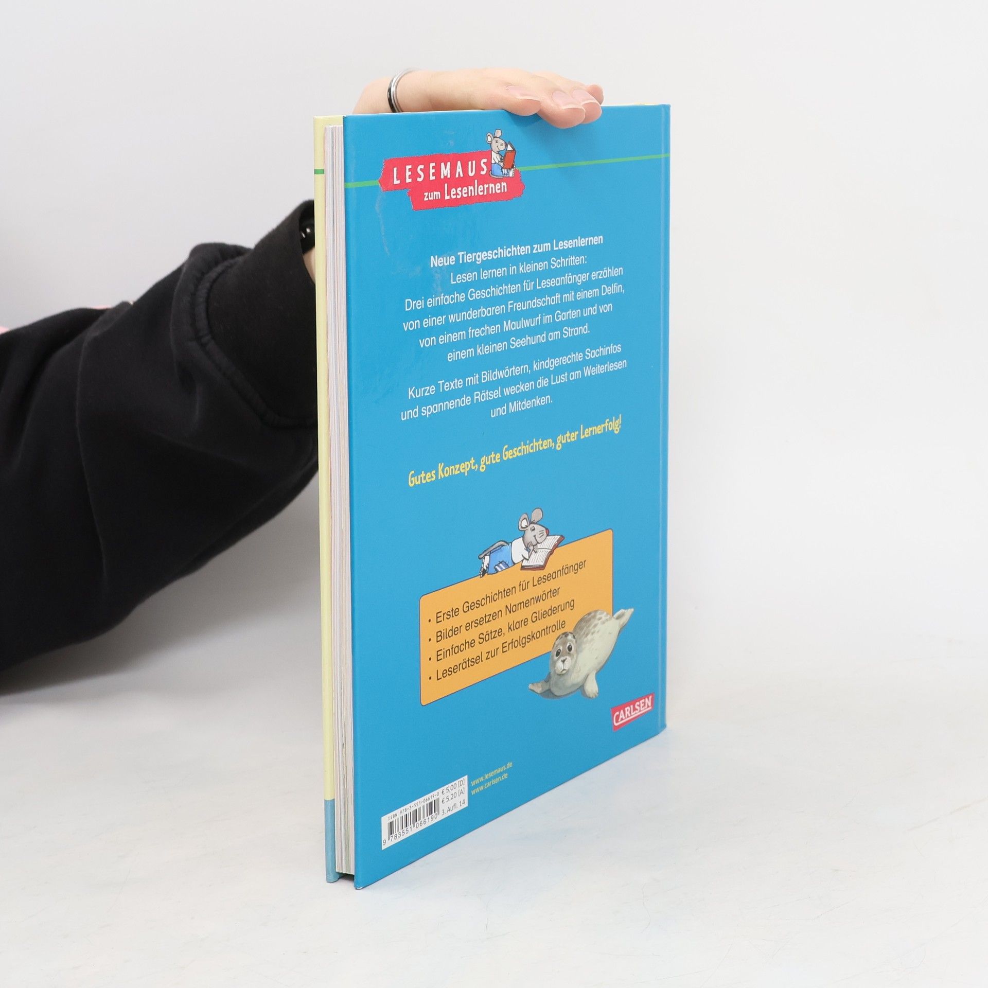 Lesen lernen in kleinen Schritten: Drei einfache Geschichten für Leseanfänger erzählen von einer wunderbaren Freundschaft mit einem Delfin, von einem frechen Maulwurf im Garten und von einem kleinen Seehund am Strand. Kurze Texte mit Bildwörtern, kindgerechte Sachinfos und spannende Rätsel wecken die Lust am Weiterlesen und Mitdenken. Erste Geschichten für Leseanfänger Bilder ersetzen Namenwörter Große Fibelschrift Leserätsel zur Erfolgskontrolle Enthält folgende Geschichten: Ein Freund mit Flossen, Immer Ärger mit dem Maulwurf, Ein Heuler in der Seehundstation