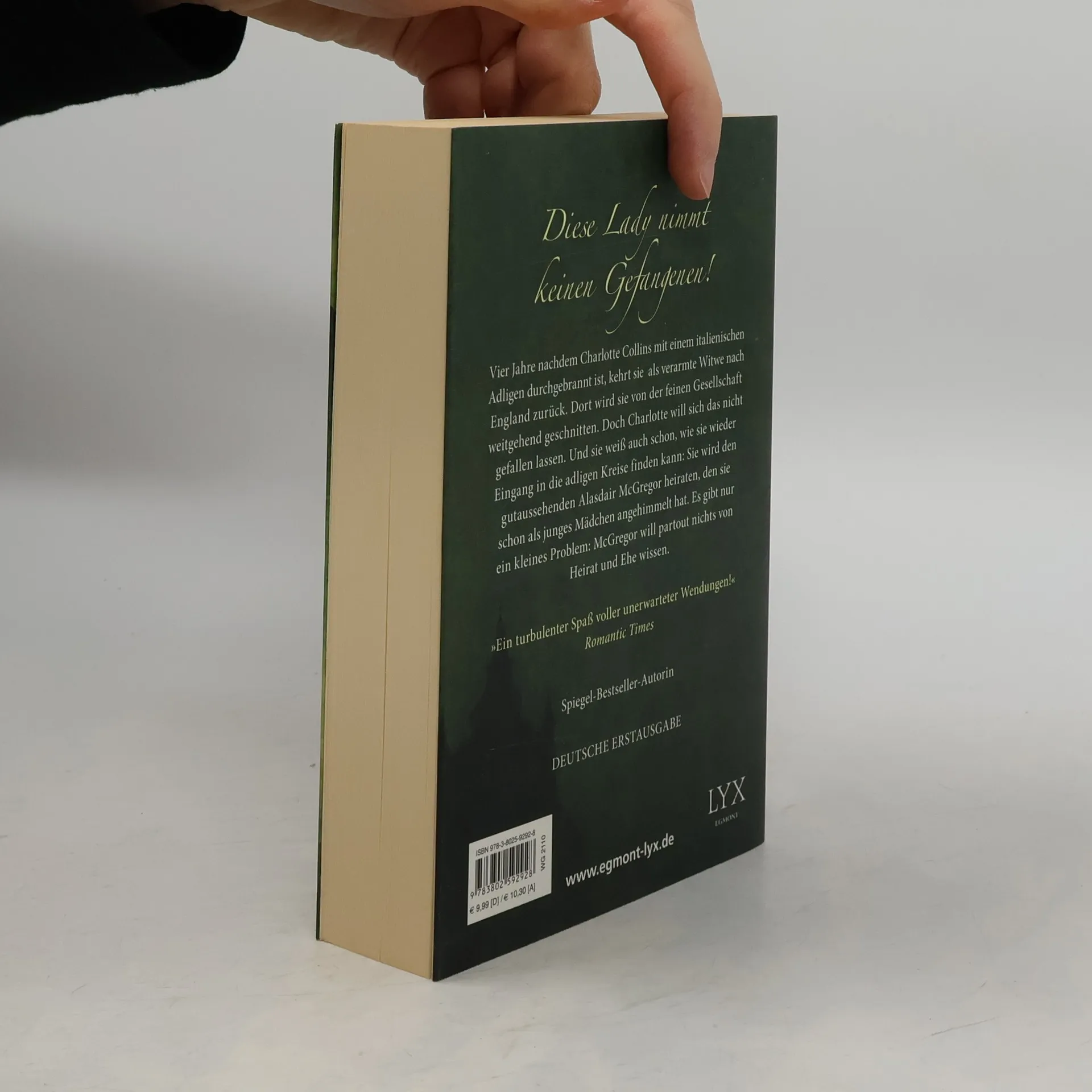 Die verarmte Witwe Lady Charlotte Collins kehrt nach England zurück, wo sie von der feinen Gesellschaft gemieden wird. Um wieder zu Ansehen zu gelangen, muss sie einen reichen Mann heiraten. Als sie dem gut aussehenden Alasdair McGregor begegnet, scheint er für sie die Rettung zu sein. Doch sein Herz zu gewinnen ist leichter gesagt als getan.