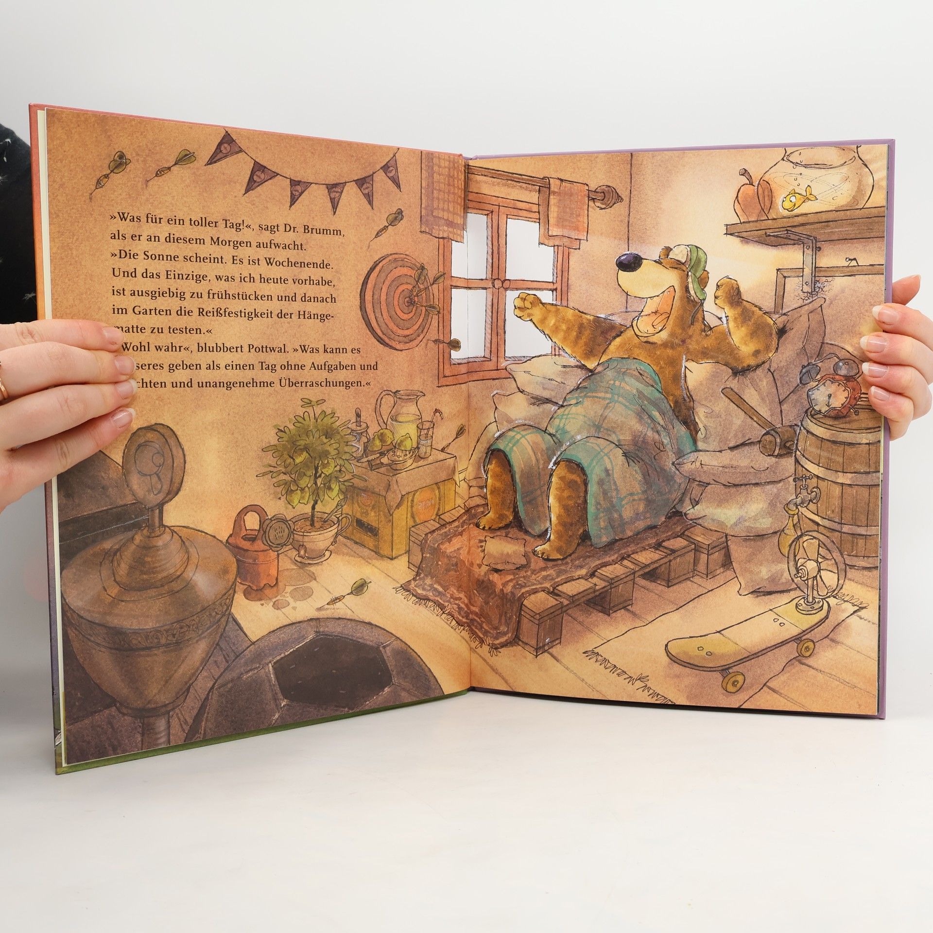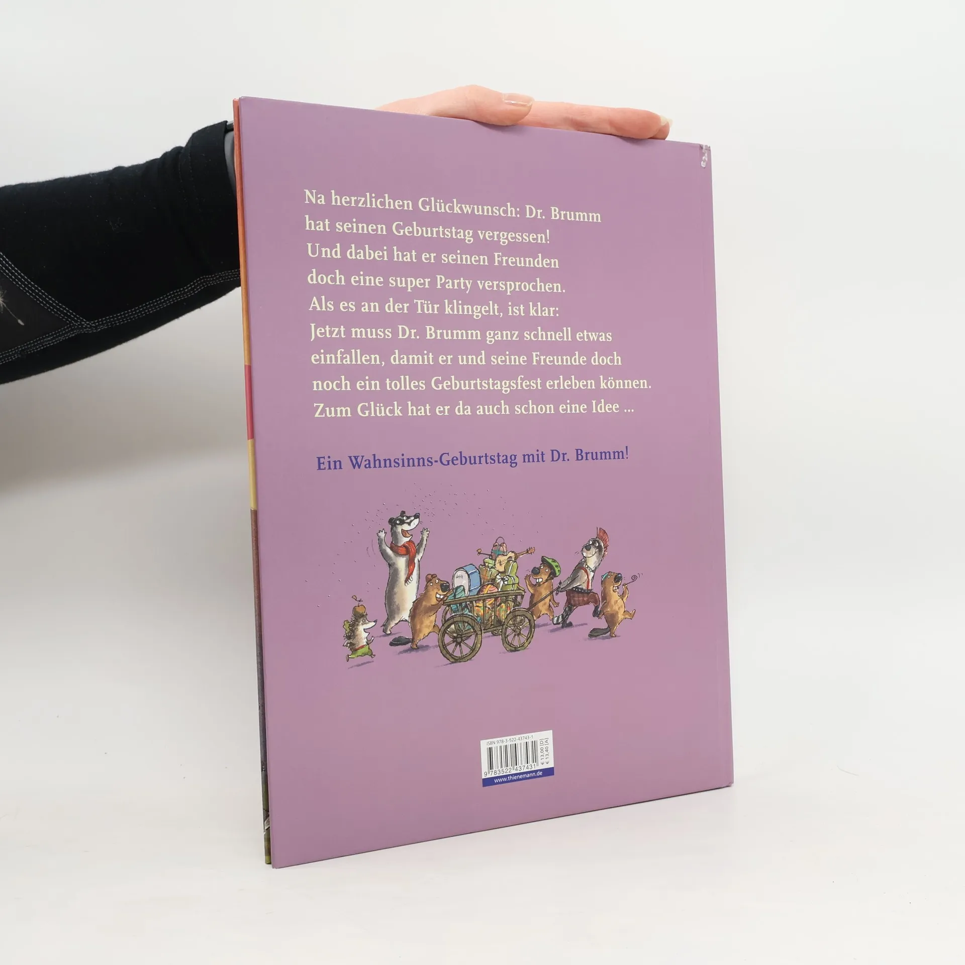 Eine turbulente Bilderbuchgeschichte für Kinder ab 4 Jahren. Na herzlichen Glückwunsch: Dr. Brumm hat seinen Geburtstag vergessen! Und dabei hat er seinen Freunden doch eine super Party versprochen. Und es stehen auch schon die ersten Gäste vor seiner Tür. Jetzt muss sich Dr. Brumm aber ganz schnell etwas einfallen lassen und improvisieren, sich Spiele ausdenken und und und. Schnell merken seine Freunde, dass er gar nichts vorbereitet hat. Kann es doch noch ein schöner Tag mit einer tollen Geburtstagsparty werden?