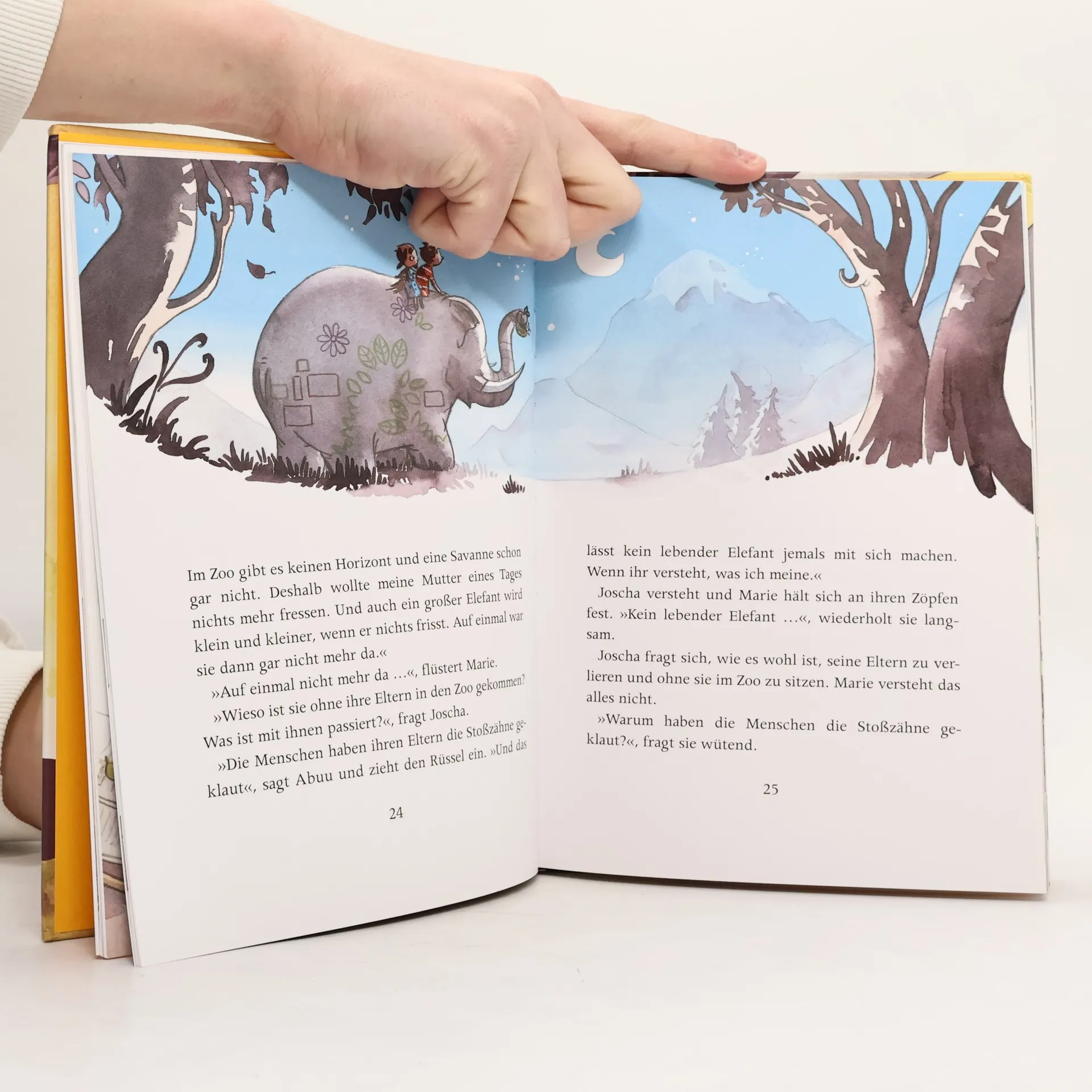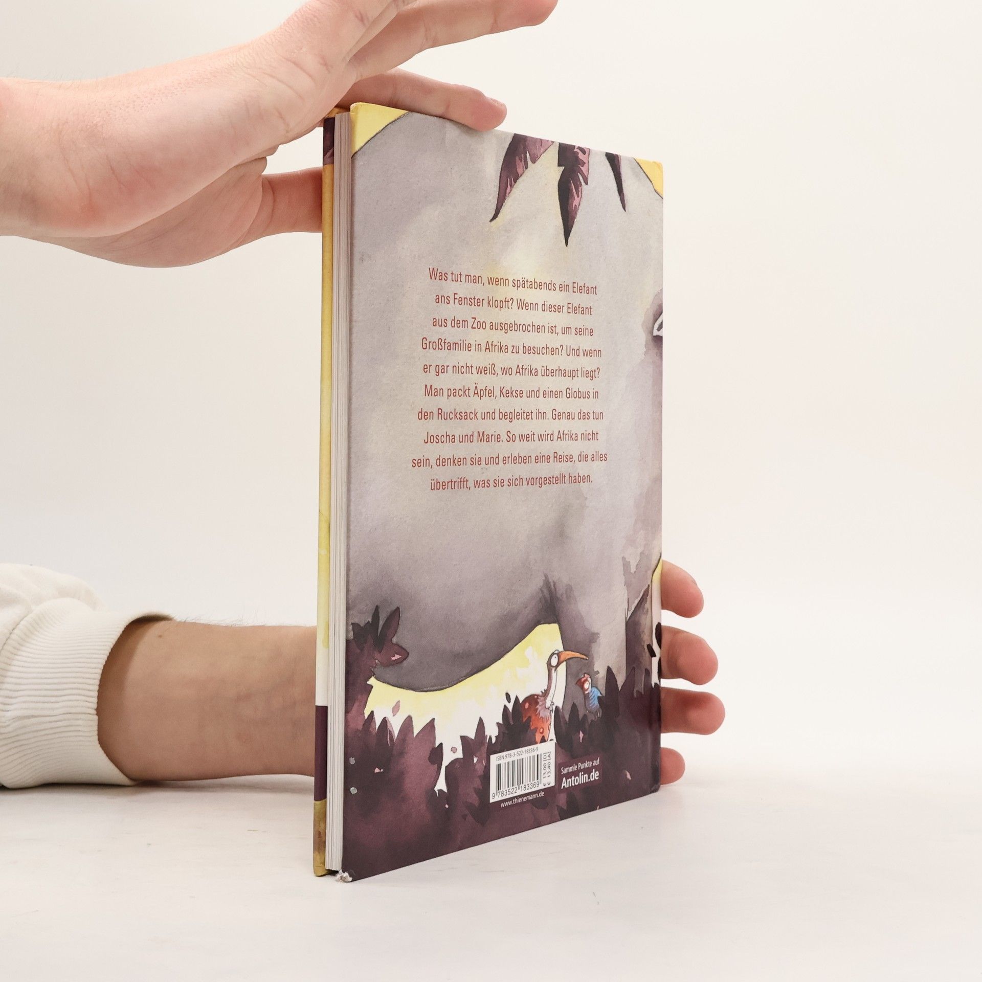 Was tut man, wenn spätabends ein Elefant ans Fenster klopft? Wenn dieser Elefant aus dem Zoo ausgebrochen ist, um seine Großfamilie in Afrika zu besuchen? Und wenn er gar nicht weiß, wo Afrika überhaupt liegt? Man packt Äpfel, Kekse und einen Globus in den Rucksack und begleitet ihn. Genau das tun Joscha und Marie. Weit wird Afrika nicht sein, denken sie und erleben eine Reise, die alles übertrifft, was sie sich vorgestellt haben.