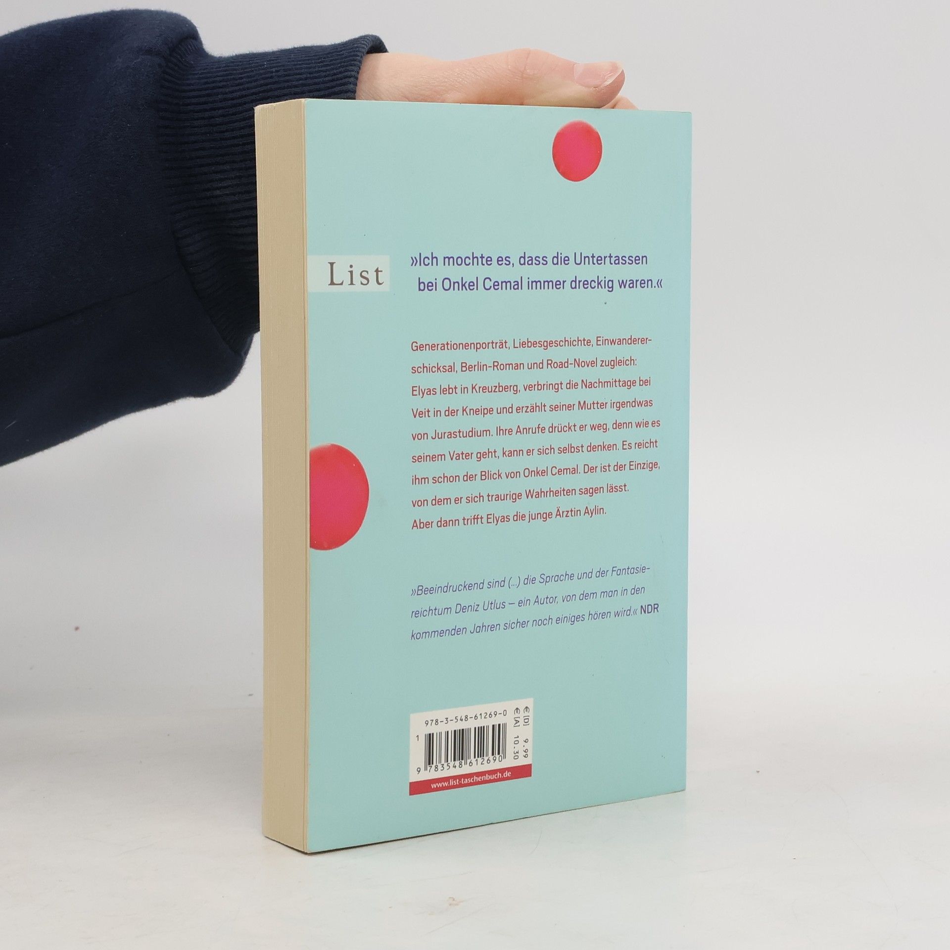 Generationenporträt, Liebesgeschichte, Einwandererschicksal, Berlin-Roman und Road-Novel zugleich: Elyas lebt in Kreuzberg, verbringt die Nachmittage bei Veit in der Kneipe und erzählt einer Mutter irgendwas von Jurastudium. Ihre Anrufe drückt er weg, denn wie es seinem Vater geht, kann er sich selbst denken. Es reicht ihm schon der Blick von Onkel Cemal. Der ist der Einzige, von dem er sich traurige Wahrheiten sagen lässt. Aber dann trifft Elyas die junge Ärztin Aylin … Eine pointierte und poetische Geschichte zweier Berliner Gastarbeiterkinder der zweiten Generation.