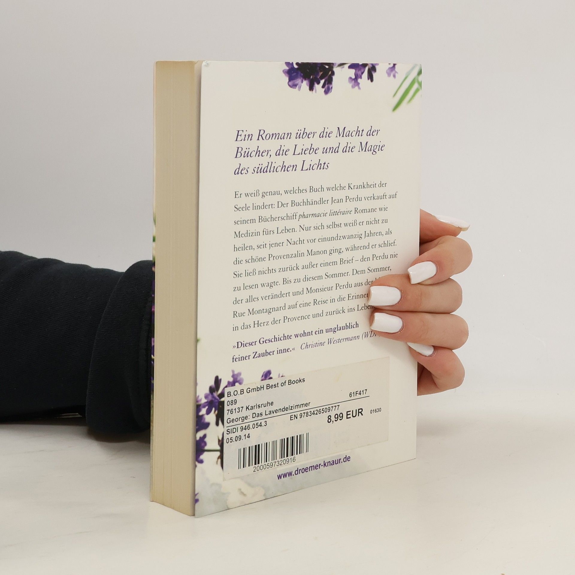 Ein unwiderstehlicher Roman über die Macht der Bücher, die Liebe und die Magie des südlichen Lichts: „Das Lavendelzimmer“ – ein internationaler Bestseller, übersetzt in 30 Sprachen, gefeiert von der Presse wie von Lesern weltweit.Er weiß genau, welches Buch welche Krankheit der Seele lindert: Auf seinem Bücherschiff, der »literarischen Apotheke«, verkauft der Pariser Buchhändler Jean Perdu Romane wie Medizin fürs Leben. Nur sich selbst weiß er nicht zu heilen, seit jener Nacht vor 21 Jahren, als die schöne Provenzalin Manon ging, während er schlief. Sie ließ nichts zurück außer einem Brief – den Perdu nie zu lesen wagte. Bis zu diesem Sommer. Dem Sommer, der alles verändert und Monsieur Perdu aus der kleinen Rue Montagnard auf eine Reise in die Erinnerung führt, in das Herz der Provence und zurück ins Leben.„Dieser Geschichte wohnt ein unglaublich feiner Zauber inne.“ Christine Westermann (WDR)