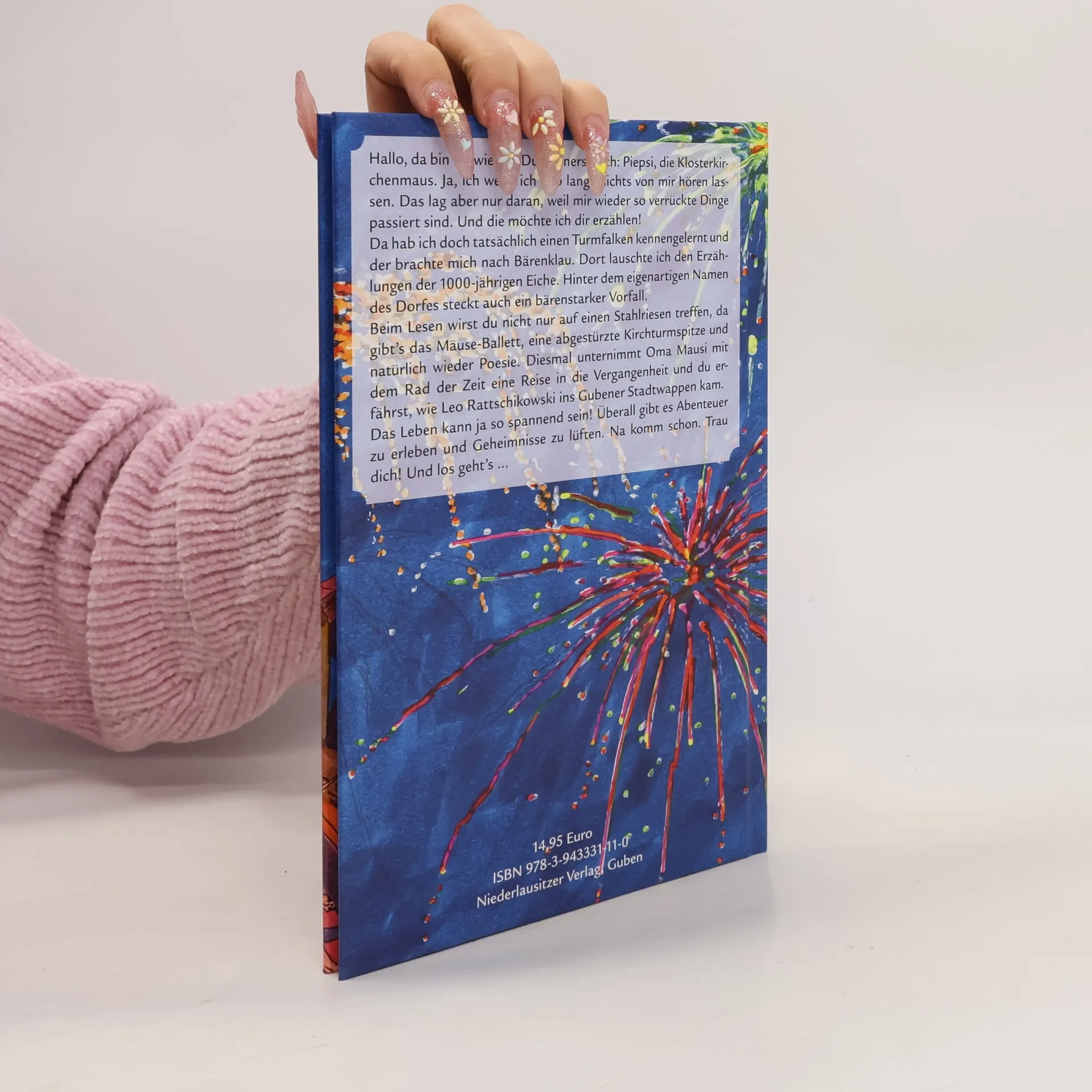 Hallo, da bin ich wieder! Du erinnerst dich: Piepsi, die Klosterkirchenmaus. Ja, ich weiß, ich hab lange nichts von mir hören lassen. Das lag aber nur daran, weil mir wieder so verrückte Dinge passiert sind. Und die möchte ich dir erzählen! Da hab ich doch tatsächlich einen Turmfalken kennengelernt und der brachte mich nach Bärenklau. Dort lauschte ich den Erzählungen der 1000-jährigen Eiche. Hinter dem eigenartigen Namen des Dorfes steckt auch ein bärenstarker Vorfall. Beim Lesen wirst du nicht nur auf einen Stahlriesen treffen, da gibt’s das Mäuse-Ballett, eine abgestürzte Kirchturmspitze und natürlich wieder Poesie. Diesmal unternimmt Oma Mausi mit dem Rad der Zeit eine Reise in die Vergangenheit und du erfährst, wie Leo Rattschikowski ins Gubener Stadt-wappen kam. Das Leben kann ja so spannend sein! Überall gibt es Abenteuer zu erleben und Geheimnisse zu lüften. Na komm schon. Trau dich! Und los geht’s …