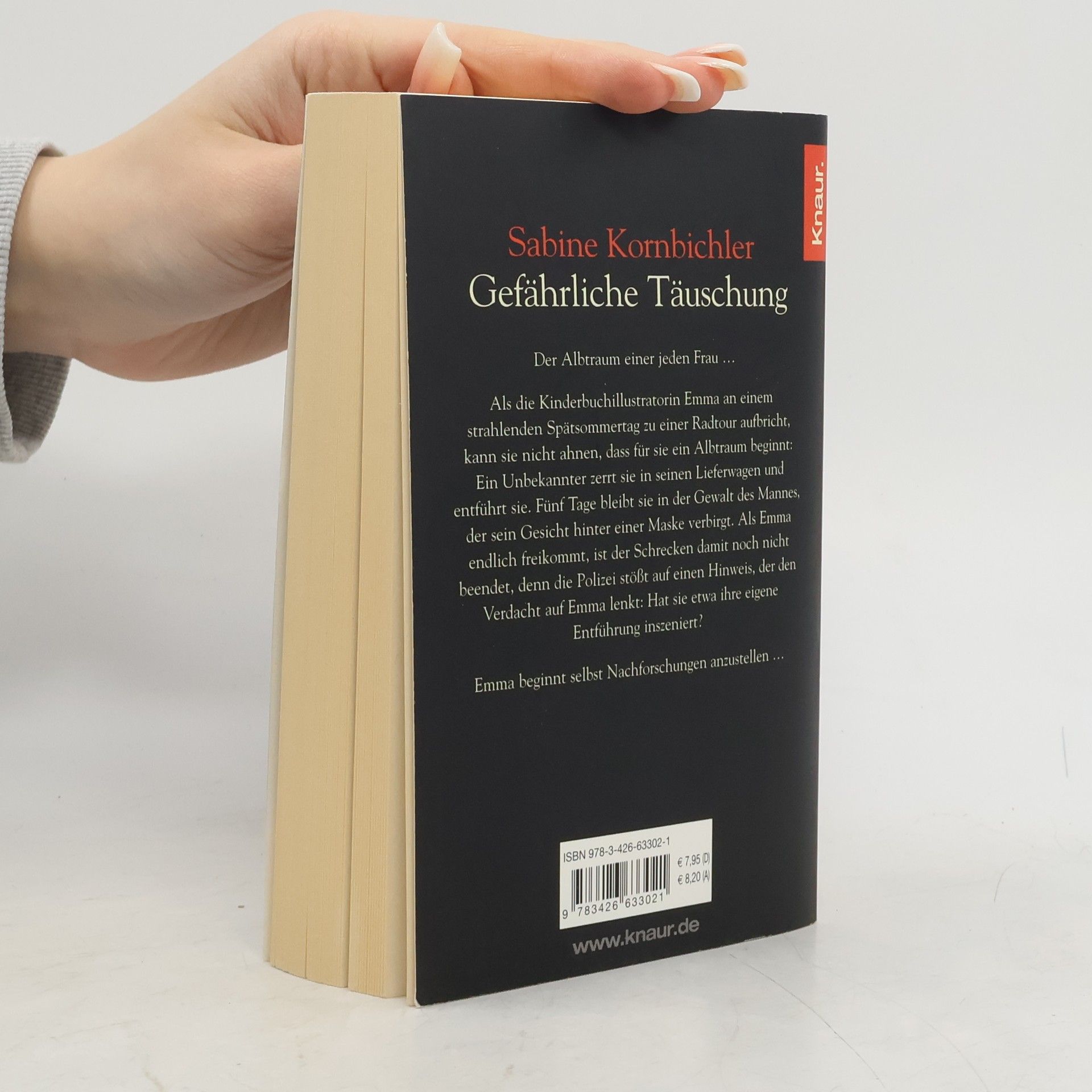 Als die Kinderbuchillustratorin Emma an einem Spätsommertag zu einer Radtour aufbricht, ahnt sie nicht, dass für sie ein Albtraum beginnt: Ein Unbekannter zerrt sie in seinen Lieferwagen und verschleppt sie. Fünf Tage bleibt sie in der Gewalt des Mannes, der sein Gesicht hinter einer Maske verbirgt. Doch als Emma endlich freikommt, ist der Schrecken noch nicht vorbei. Die Polizei vermutet, sie habe ihre eigene Entführung inszeniert. Emma sieht keinen anderen Ausweg, als sich selbst auf die Suche nach dem Täter zu machen.