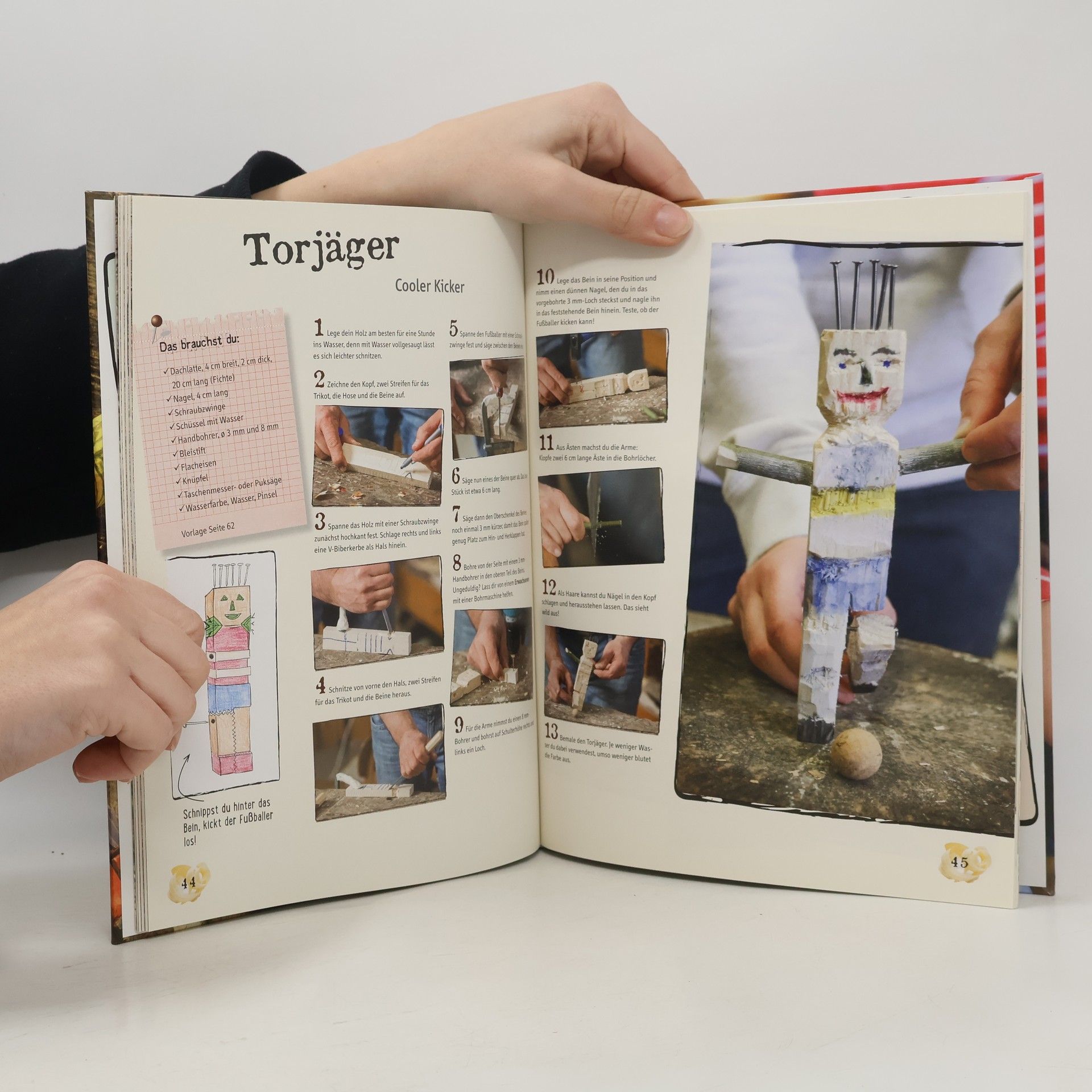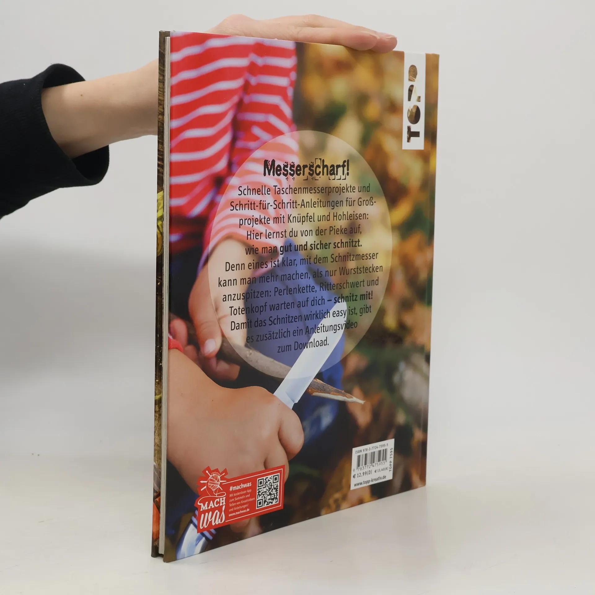 Das Buch für alle, die mit ihren Kindern verletzungsfrei schnitzen möchten. 17 Taschenmesserprojekte und Schritt-für-Schritt-Anleitungen für Großprojekte mit Klüpfel und Hohleisen: Hier lernt man von der Pieke auf, wie man sauber und sicher schnitzt. Denn eines ist klar, mit dem Schnitzmesser kann man mehr machen, als nur Wurststecken anzuspitzen: Wikingerschmuck, Streitäxte und Totenköpfe! Ein tolles Geschenk auch für Mädchen! Hardcover, 64 Seiten, 20 x 26 cm