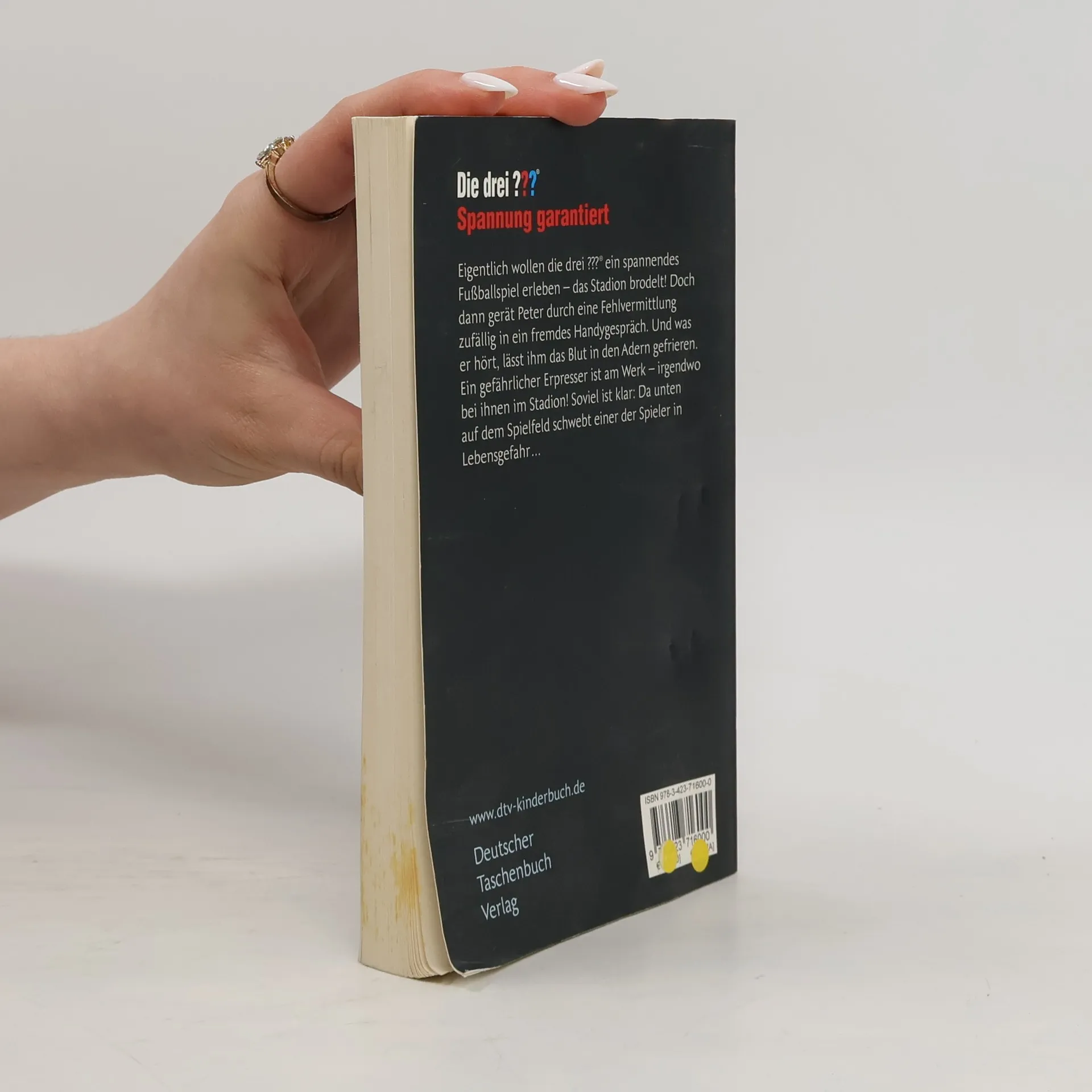 50 Jahre ›Die drei ???‹ Eigentlich wollten die drei ??? nur das spannende Fußballspiel um den Highschool-Meisterschaftstitel genießen, als sich Peter durch Zufall in ein Handygespräch zuschaltet. Was die drei dabei zu hören bekommen, ruft ihre feinen Spürnasen auf den Plan: Ein Erpresser droht dem Vater des Mitspielers Tom. Sollte er die Forderungen nicht erfüllen können, steht am Ende des Matchs das Leben des Jungen auf dem Spiel! So beginnt eine aufregende Hetzjagd durch das Stadion und quer durch Los Angeles. Immer wieder stellt der Erpresser seinem Opfer neue Rätsel, die die drei ??? zu lösen versuchen, um dem Vater zu helfen und Zeit zu schinden. Schließlich bleiben ihnen nur 90 Minuten, um den Täter zu stellen!