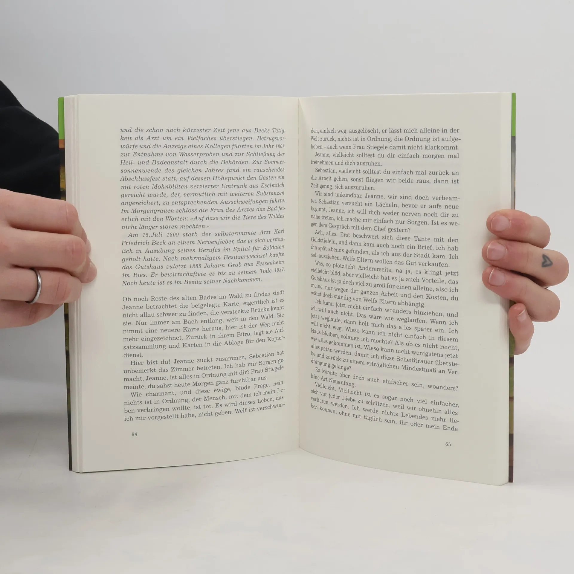 Das Schicksal hat Jeanne getroffen ohne vorher auch nur anzuklopfen. Welf ist tot. Nun ist sie allein in Siebenbrunn und lernt, um eine Leerstelle herum zu leben. Der Wald, an dessen Rand sie in einem alten Gutshaus wohnt, ist frühlingsregennass, ihre staubige Arbeit im Stadtarchiv geht weiter. Dort trifft sie Antonia Weißdorn, rothaarig, goldbeschuht und mit robustem Humor ausgestattet, eine Künstlerin mit der Aufgabe, der Geschichte Siebenbrunns eine Form zu geben. Es wird leichter und es wird wärmer. Doch als Welfs Eltern beschließen, das Haus zu verkaufen, strauchelt Jeanne erneut. Zur gleichen Zeit stellt eine junge Studentin auf der Suche nach dem Vater, den sie kaum gekannt hat, ihr Zelt in den nassen Wald und fotografiert: junge Blätter und verirrte Enten, zugewachsene Wege und das verlassene Schulhaus. Auch sie trifft auf Antonia, die sich dort selbstbewusst mit ihrem Praktikanten Josh vergnügt, seltsame Installationen anbringt und aller Welt demonstriert, wie leicht es ist, dem Leben das Glück buchstäblich abzutrotzen.