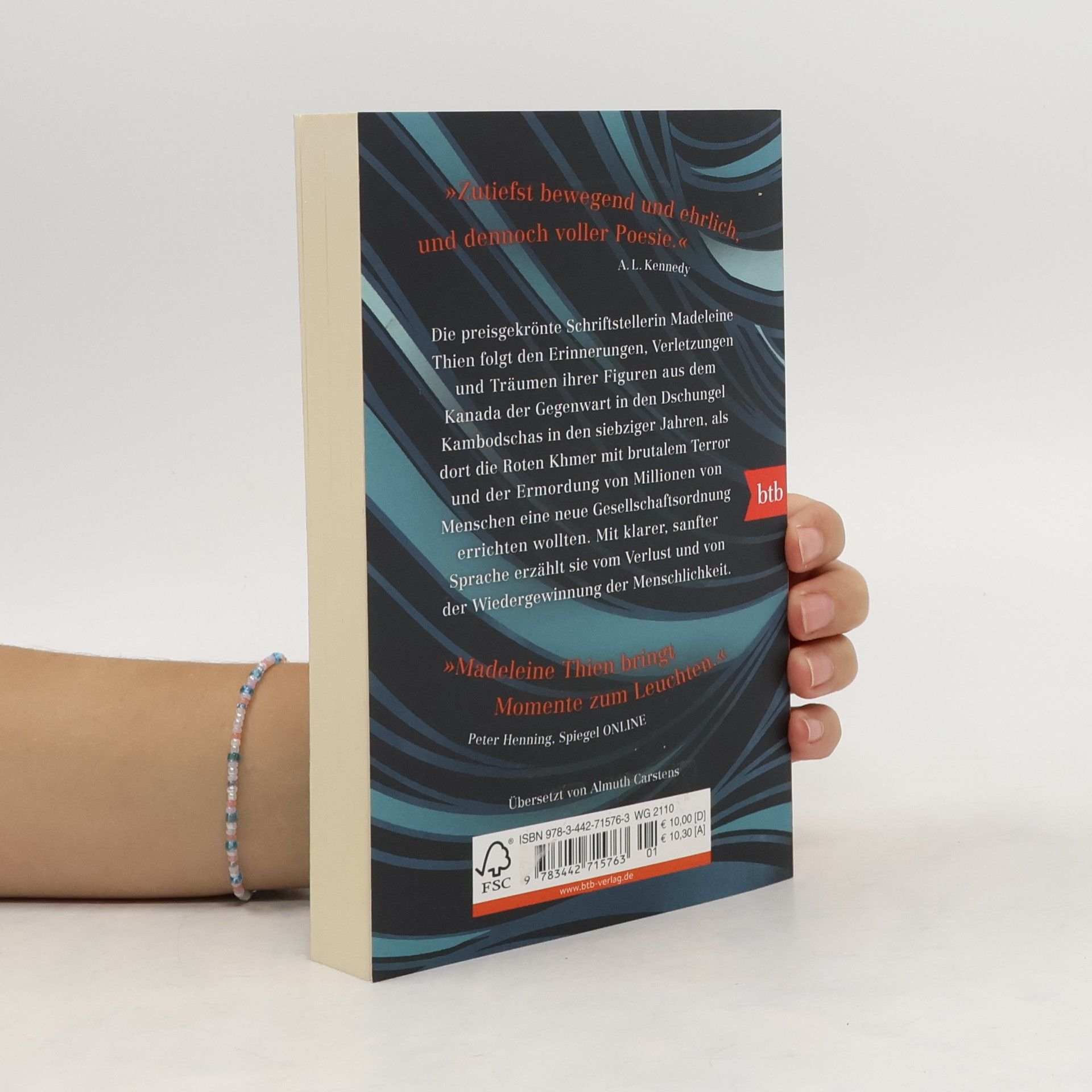 Die Neurologin Janie kam als Mädchen von Kambodscha nach Kanada und hat sich in Montreal ein neues Leben aufgebaut. Als ihr Kollege und Mentor Hiroji plötzlich spurlos verschwindet, bricht diese Welt für sie zusammen, und sie muss sich der eigenen Vergangenheit stellen. Die preisgekrönte Schriftstellerin Madeleine Thien folgt den Erinnerungen, Verletzungen und Träumen ihrer Figuren aus dem Kanada der Gegenwart in den tropischen Dschungel Kambodschas in den siebziger Jahren, als dort die Roten Khmer mit brutalem Terror und der Ermordung von Millionen von Menschen eine neue Gesellschaftsordnung errichten wollten. Mit klarer, sanfter Sprache erzählt sie vom Verlust und von der Wiedergewinnung der Menschlichkeit.