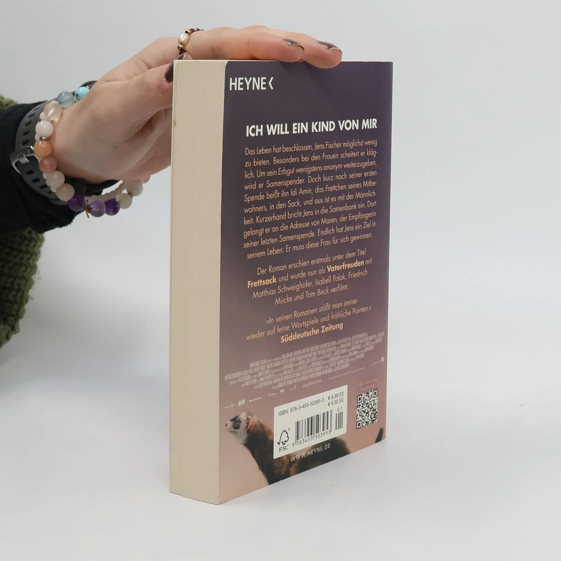 Verfilmt mit Matthias Schweighöfer Das Leben hat beschlossen, Jens Fischer möglichst wenig zu bieten. Besonders bei den Frauen scheitert er kläglich. Um sein Erbgut wenigstens anonym weiterzugeben, wird er Samenspender. Doch kurz nach seiner ersten Spende beißt ihn Idi Amin, das Frettchen seines Mitbewohners, in den Sack, und aus ist es mit der Männlichkeit. Kurzerhand bricht Jens in die Samenbank ein. Dort gelangt er an die Adresse von Maren, der Empfängerin seiner letzten Samenspende. Endlich hat Jens ein Ziel in seinem Leben: Er muss diese Frau für sich gewinnen. Der Roman erschien erstmals unter dem Titel Frettsack und wurde nun als Vaterfreuden mit Matthias Schweighöfer, Isabell Polak, Friedrich Mücke und Tom Beck verfilmt.