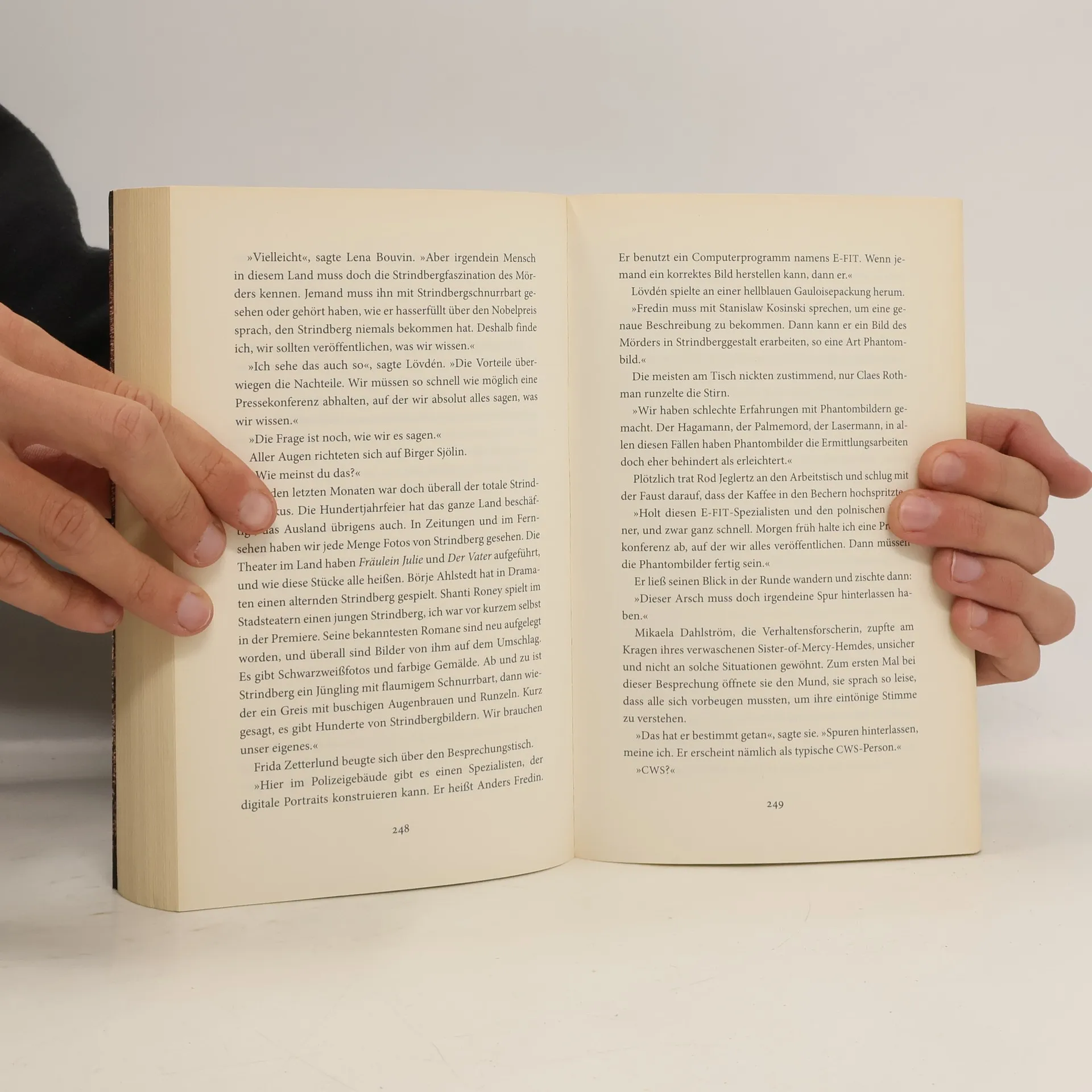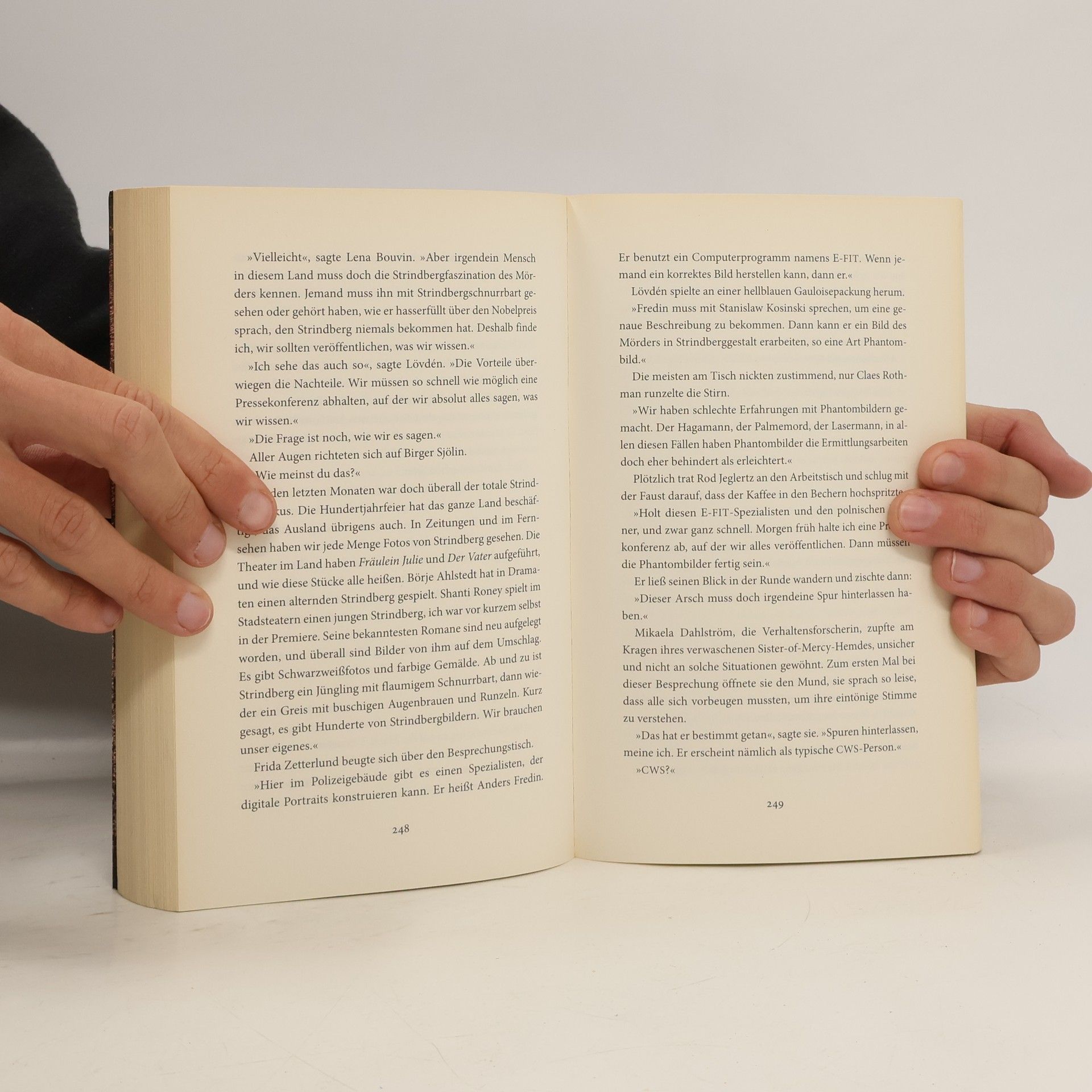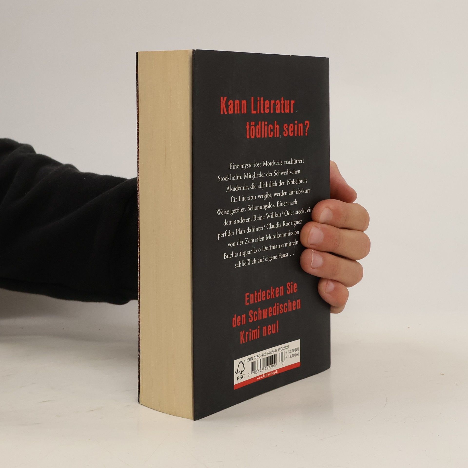 Stockholm, im Mai: Im weltberühmten Hotel Berns Salonger hat man gerade Strindbergs 100. Todestag begangen. Die Festrede hielt der Ständige Sekretär der Schwedischen Akademie, ein würdiger Mann und ebenfalls angesehener Schriftsteller. Jetzt kurz vor Mitternacht ist er auf dem Weg nach Hause, durch einen abgeschiedenen Park. Hier trifft es ihn unvermittelt, das Schicksal. Hier wird er ermordet. Tatwaffe ist ein altertümlicher Schwarzpulverrevolver, der die Polizei vor Rätsel stellt. Noch bevor sie sich für eine Ermittlungsrichtung entscheiden kann, geschehen am nächsten Tag vier weitere, ebenso schonungslose Morde. Die Opfer: ebenfalls Mitglieder der Akademie, die für die Auslobung des jährlichen Literaturnobelpreisträgers verantwortlich ist. Was treibt den Mörder um? Klar ist, dass die anderen Akademiemitglieder geschützt werden müssen. Klar ist auch, dass hier konventionelle Methoden nicht weiterhelfen. Claudia Rodriguez von der Zentralen Mordkomission ermittelt auf eigene Faust – und gegen den Willen ihrer Vorgesetzten. Statt dessen bittet sie ihren alten Freund Leo Dorfman um Hilfe, einen Buchantiquar …