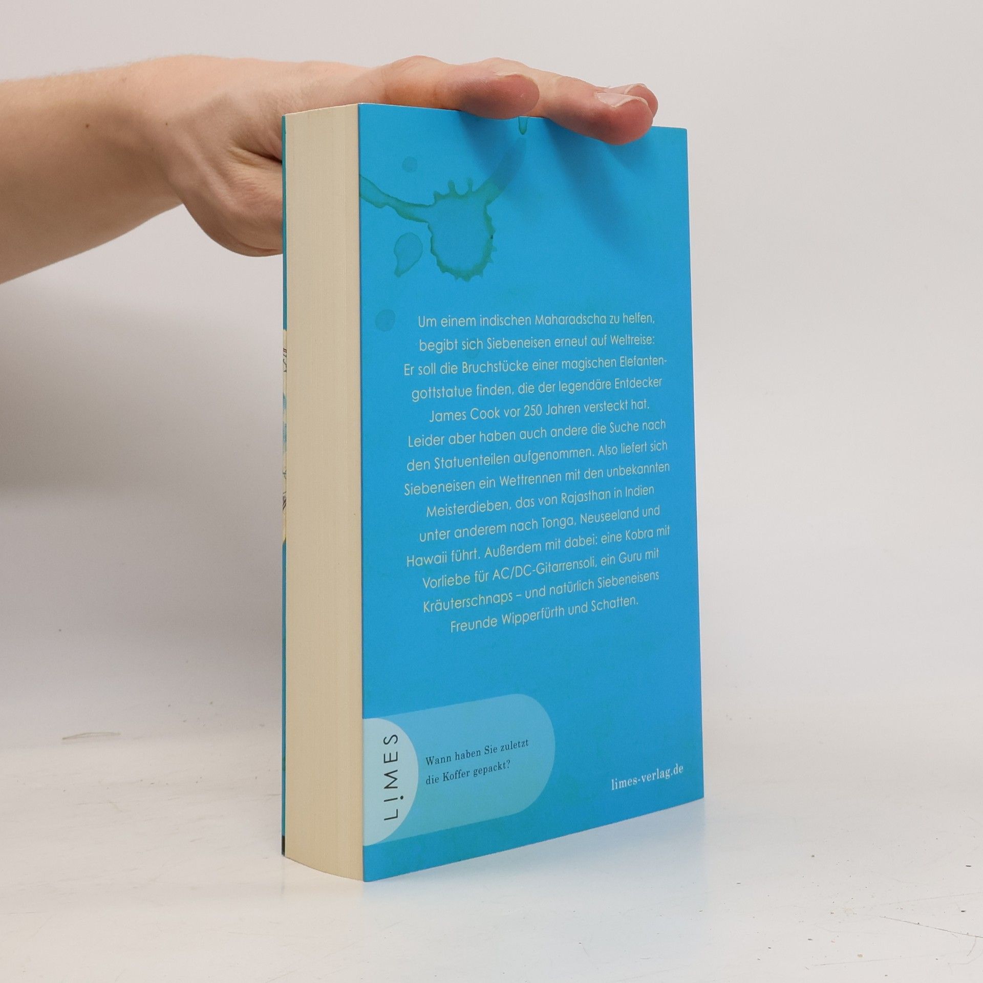 Urkomisch, kurios, schräg – Siebeneisen ist zurück! Und wieder ist Siebeneisen auf einer unfreiwilligen Reise um die Welt – dieses Mal auf der Suche nach den Einzelteilen einer magischen Ganesha-Statue, die James Cook vor 250 Jahren aus der Schatzkammer eines Maharadschas in Sicherheit gebracht hat. Jetzt versucht ein Meisterdieb, die Stücke in seinen Besitz zu bringen, und nur Siebeneisen kann ihn stoppen. Ein Wettrennen um den Globus beginnt: Die Suche nach dem Elefantengott führt von Tonga nach Neuseeland, Hawaii und Kanada. Und während sich Siebeneisen mit Straußen, Eisbären und einem kleptomanischen Buschbaby herumschlagen muss und seine Freunde ihn aus dem Teehaus »Zur Faulen Kobra« unterstützen, wird im Palast des Maharadschas ein ganz anderer Plan verfolgt.