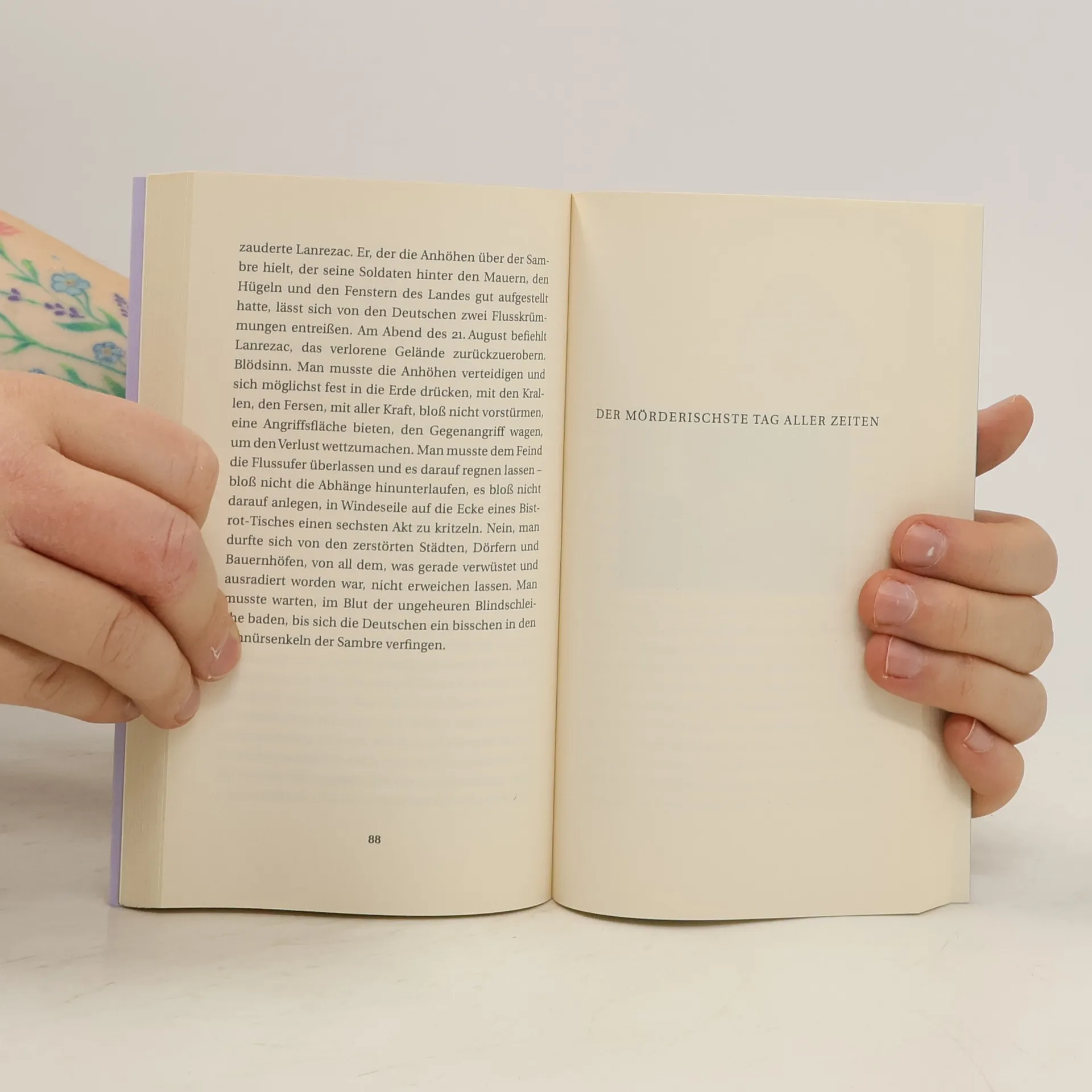 Wir kennen alle Details des Ersten Weltkriegs, seinen Beginn, seinen Verlauf, sein Ende. Doch die Wahrheit über diese fundamentale Erschütterung des Abendlandes kennen wir nicht. Vuillard führt uns diese Unkenntnis mit seiner grandiosen literarischen Geschichtsrhapsodie vor Augen. Er vermischt die sonst säuberlich getrennten Perspektiven und fügt sie zu einem neuen Ganzen zusammen. Mit atemberaubenden, musikalisch komponierten Assoziationen verbindet er die große Politik mit dem Elend der Schützengräben, die Detonationen der Gasgranaten mit den gemeinsamen Tänzen der Mächtigen jenseits der Front. In der ›Ballade vom Abendland‹ wird die Geschichte zum Handelnden, erkennbar im Mosaik der Bilder, Vuillard will uns befreien, ernüchtern vom trunkenen Schwelgen in Tod, Opfer, Schlachten, Zerstörung und Heldentum.