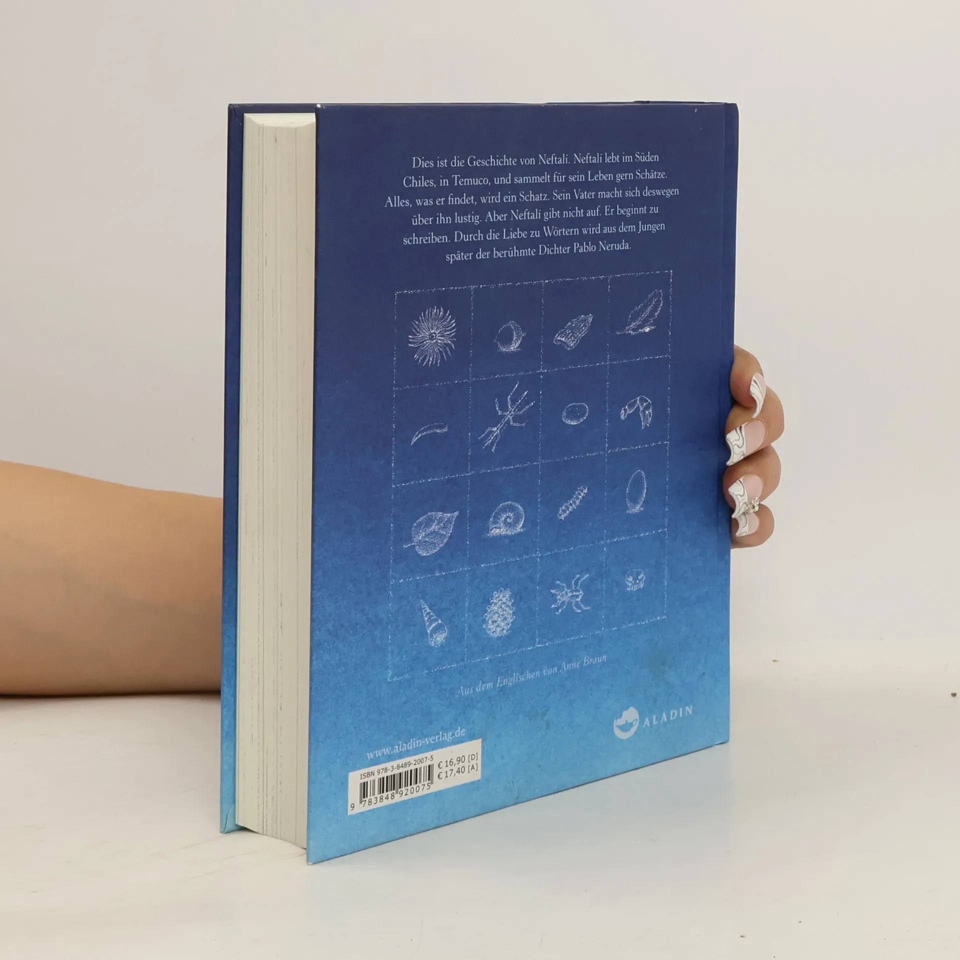 Gewinner des Deutschen Jugendliteraturpreises 2015 in der Kategorie Kinderbuch! Neftali ist 8 und lebt mit seiner Familie in Temuco, einer kleinen Stadt im Süden Chiles. Sein Vater ist streng und wünscht sich, dass er etwas »Vernünftiges« lernt. Aber Neftalis Leidenschaft ist das Lesen und das Sammeln - Blätter, Steine, Vogelnester, Tannenzapfen, Muscheln. Und immer gibt es dazu Geschichten, die sich Neftali ausdenkt, und Wörter, die er auf Zettel schreibt und in seine Schublade steckt. Seine Schätze. Endlich kommt der Sommer, an dem sie ans Meer fahren, an den Pazifik, der rauh ist und kalt, aber so unendlich weit und wunderschön. Und all sein Hoffen ist, das der Vater vielleicht am Meer nicht so streng ist wie sonst. Am Ende dieses einfühlsamen und warmherzigen Romans, Neftali ist inzwischen 15, müssen wir lernen, dass irgendwann jeder seinen Weg gehen muss, so schwer er auch ist und so schmerzlich Abschiede sind. Neftali geht zum Studium nach Santiago, und aus dem Jungen aus dem Süden wird der berühmte Schriftsteller Pablo Neruda. Peter Sís, den wir aus der »Konferenz der Vögel« kennen, hat das Buch durchillustriert und gestaltet und es auch optisch zu einem Kunstwerk gemacht.