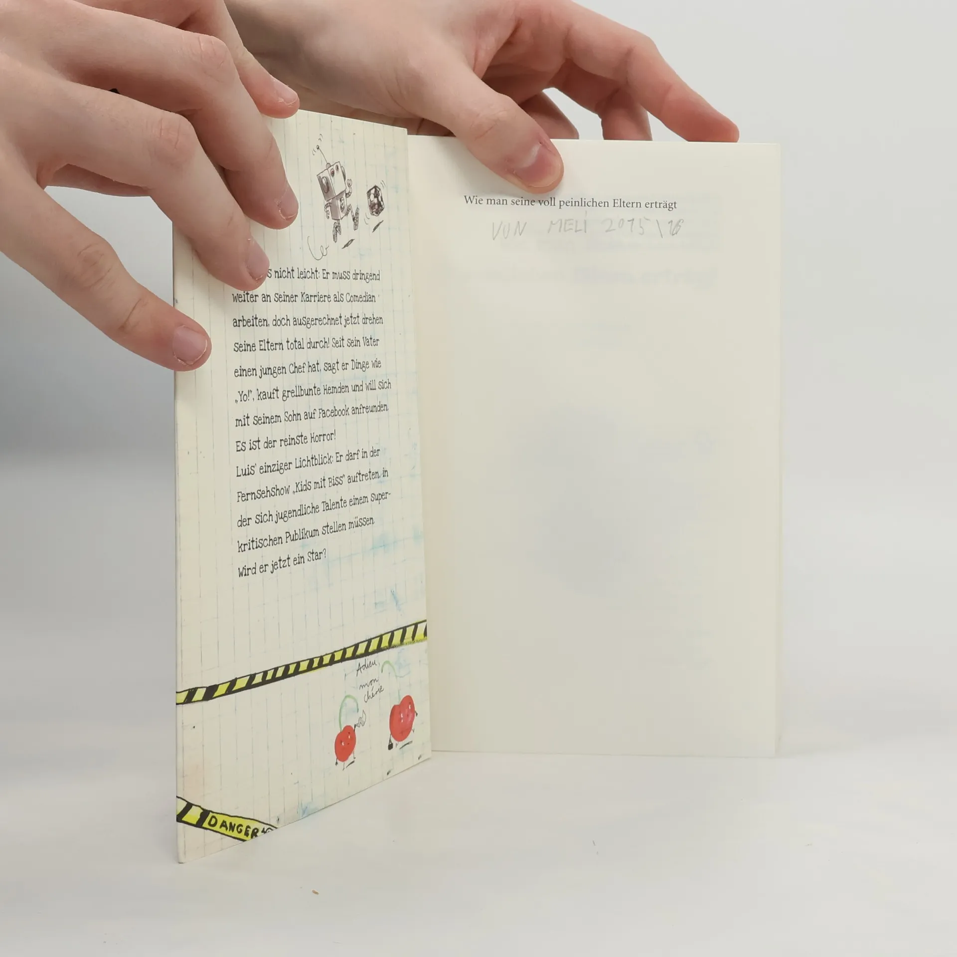Luis hat's nicht leicht: Er muss dringend weiter an seiner Karriere als Comedian arbeiten, doch ausgerechnet jetzt drehen seine Eltern total durch! Seit sein Vater einen jungen Chef hat, sagt er Dinge wie „Yo!“, kauft grellbunte Hemden und will sich mit seinem Sohn auf Facebook anfreunden. Es ist der reinste Horror! Luis' einziger Lichtblick: Er kann in der Fernsehshow „Kids mit Biss“ auftreten, in der sich zehn jugendliche Talente einem superkritischen Publikum stellen müssen. Wird er jetzt ein Star? *** Heute Abend hat Mum mir mitgeteilt: „Wir sind Facebook beigetreten.“ „Ihr seid was?!“, stammelte ich. „Dein Dad und ich haben Facebook-Profile angelegt“, sagte Mum. „Wir dachten, dafür würde es höchste Zeit“, fügte Dad hinzu. Mit listigem Lächeln beugte Mum sich vor. „Wir wollten dich außerdem fragen, ob wir uns mit dir auf Facebook anfreunden können. So nennt man das doch.“ Ich war zu entsetzt, um etwas zu antworten.