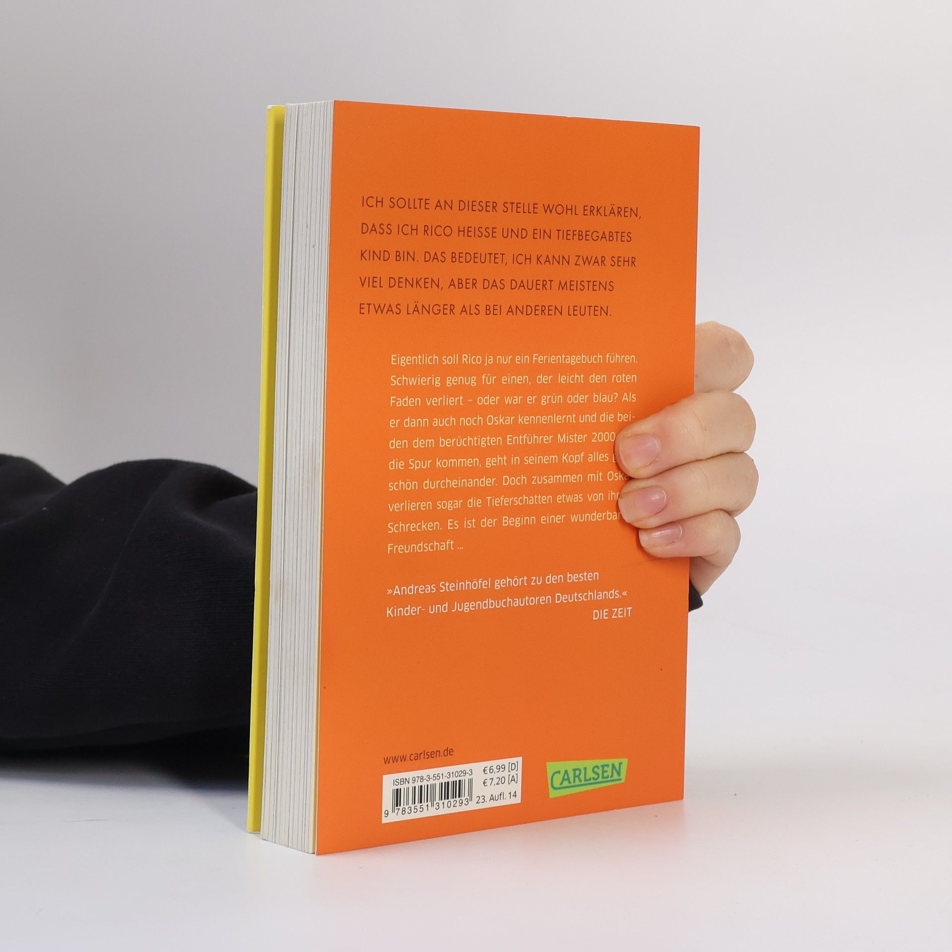 Band 1 der preisgekrönten und verfilmten Abenteuer mit Rico und Oskar Eigentlich soll Rico ja nur ein Ferientagebuch führen. Aber für einen, der ständig den Faden verliert, ist das gar nicht so leicht! Als er dann auch noch Oskar mit dem blauen Helm kennenlernt und die beiden dem berüchtigten ALDI-Kidnapper auf die Spur kommen, weiß Rico gar nicht mehr, wo vorne und hinten ist. Wenigstens verlieren mit Oskar die Tieferschatten etwas von ihrem Schrecken - und so entsteht aus dem ganzen Chaos eine wunderbare Freundschaft. »Fantasievoll, rührend, lustig. Einfach schön.« DER SPIEGEL Alle Bücher über Rico und Oskar: Rico, Oskar und die Tieferschatten (Band 1)Rico, Oskar und das Herzgebreche (Band 2)Rico, Oskar und der Diebstahlstein (Band 3)Rico, Oskar und das Vomhimmelhoch (Band 4) Kindercomics:Rico & Oskar – Fische aus Silber Rico & Oskar – Die RegenhütteRico & Oskar – Die perfekte ArschbombeRico & Oskar – Die Sache mit den Öhrchen