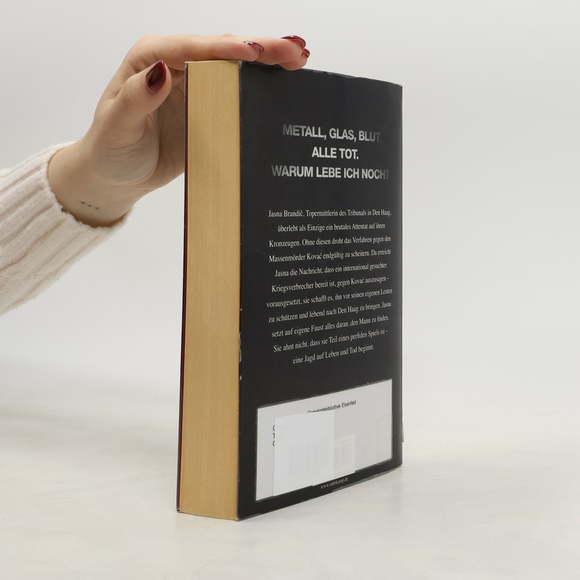 Metall, Glas Blut. Alle tot. Warum lebe ich noch? -- Jasna Brandić, Topermittlerin des Tribunals in Den Haag, überlebt als Einzige ein brutales Attentat auf ihren Kronzeugen. Ohne diesen droht das Verfahren gegen den Massenmörder Kovać endgültig zu scheitern. Da erreicht Jasna die Nachricht, dass ein international gesuchter Kriegsverbrecher bereit ist, gegen Kovać auszusagen – vorausgesetzt, sie schafft es, ihn vor seinen eigenen Leuten zu schützen und lebend nach Den Haag zu bringen. Jasna setzt auf eigene Faust alles daran, den Mann zu finden. Sie ahnt nicht, dass sie Teil eines perfiden Spiels ist eine Jagd auf Leben und Tod beginnt.