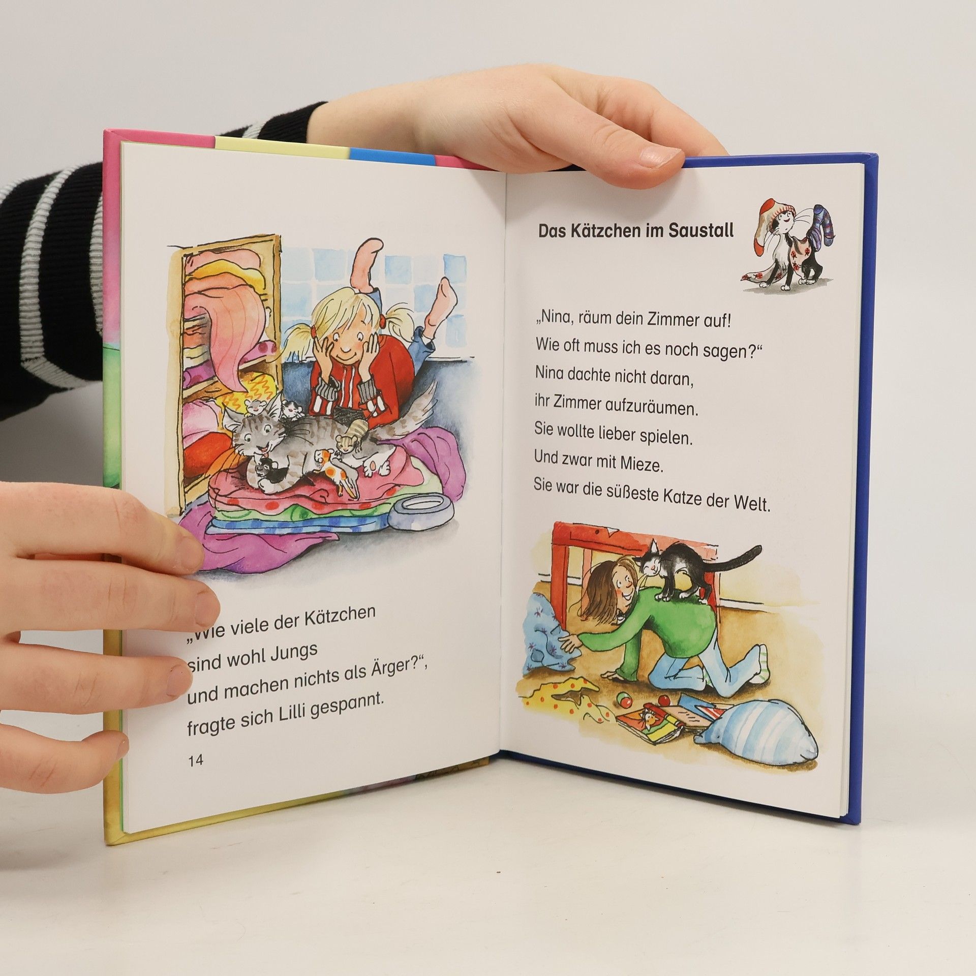 Das Buch ist bei deiner Buchhandlung vor Ort und bei vielen Online-Buchshops erhältlich!+ Bücher, die Kinder gerne lesen wollen + Beliebtes Thema: Katzen + Ausgewogenes Text-Bild-Verhältnis + Große Schrift + Kurze Kapitel + Geeignet zum Vorlesen und ersten Selberlesen + Ideal zum Lesenlernen + Hochwertiges Hardcover + Mit vielen farbigen Illustrationen + Bewährte Qualität + Hexe Simsa ist im Wald unterwegs, als sie ein Kätzchen mit magischen Kräften trifft. Auch bei den Katzen Titus und Tinka wird es spannend: Titus‘ Wollknäuel wurde geklaut! Zusammen machen sich die beiden auf die Suche nach dem Dieb… Mit Silbengeschichten Lesen lernen: - Wörter durch Silben schneller erkennen- Verbessert nachweislich die Rechtschreibung- den Sinn der Wörter besser erfassen - flüssiger lesen - auch auf antolin. de gelistet Mit Silben flüssig lesen lernen! Durch kurze, einfache Sätze in großer Fibelschrift können Kinder ab 7 Jahren (2. Klasse) leicht lesen lernen. Die Silbenmethode unterstützt sie dabei: Die farbige Markierung der einzelnen Silben sorgt für bessere Erkennbarkeit und damit für einen schnelleren Leseerfolg. Die vielen bunten Bilder in diesem Kinderbuch tragen zusätzlich zum Textverständnis bei.