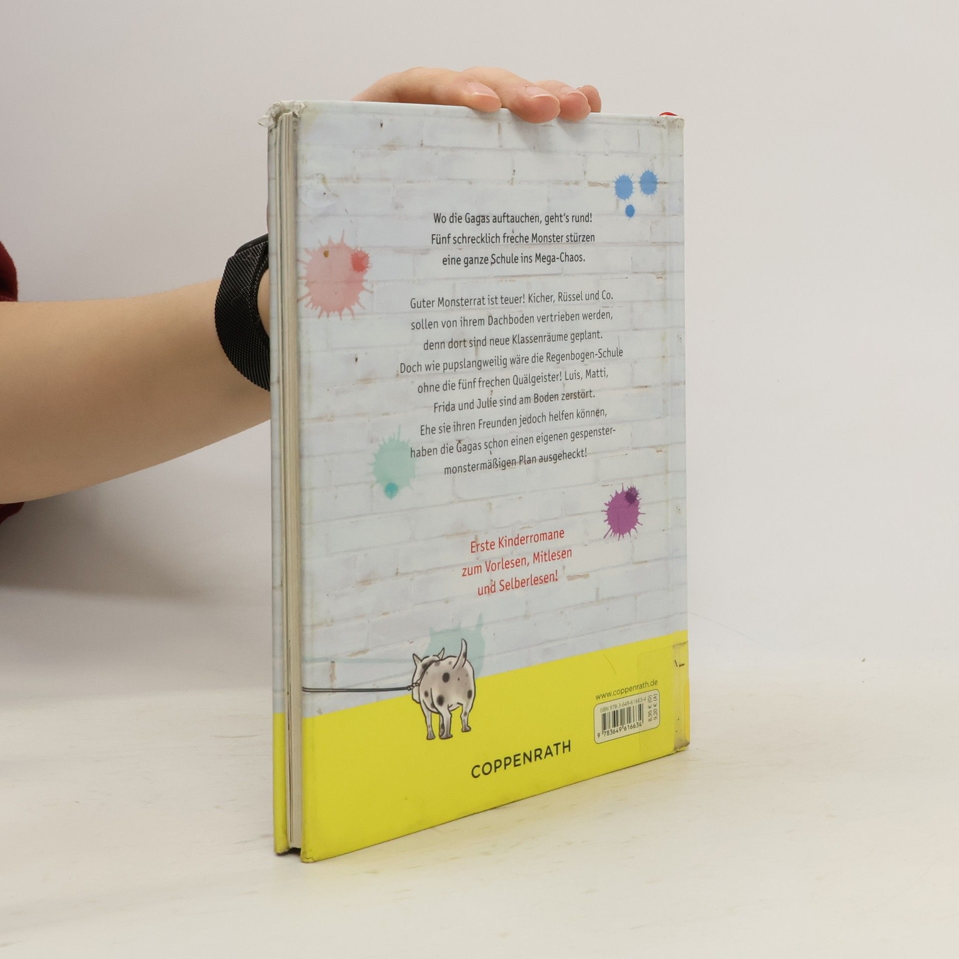 Guter Monsterrrat ist teuer! Kicher, Rüssel und Co. sollen von ihrem Dachboden vertrieben werden, denn dort sind neue Klassenräume geplant. Doch wie pupslangweilig wäre die Regenbogen-Schule ohne die fünf frechen Quälgeister! Luis, Matti, Frida und Julie sind am Boden zerstört. Ehe sie ihren Freunden jedoch helfen können, haben die Gagas schon einen eigenen gespenstermonstermäßigen Plan!