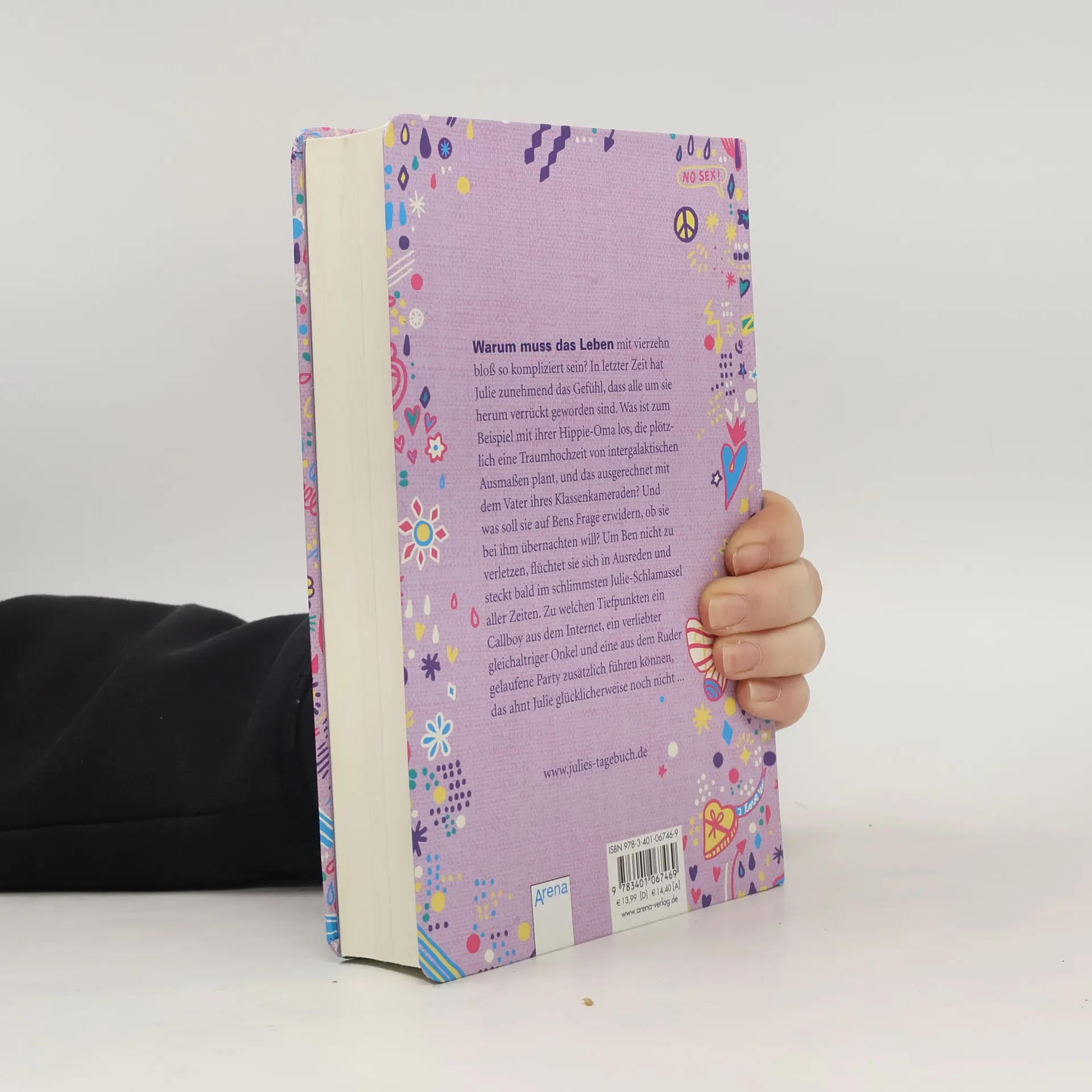 Warum muss das Leben mit vierzehn bloß so kompliziert sein? In letzter Zeit hat Julie zunehmend das Gefühl, dass alle um sie herum verrückt geworden sind. Was ist zum Beispiel mit ihrer Hippie-Oma los, die plötzlich eine Traumhochzeit von intergalaktischen Ausmaßen plant, und das ausgerechnet mit dem Vater ihres Klassenkameraden? Und was soll sie auf Bens Frage erwidern, ob sie bei ihm übernachten will? Um Ben nicht zu verletzen, flüchtet sie sich in Ausreden und steckt bald im schlimmsten Julie-Schlammassel aller Zeiten. Zu welchen Tiefpunkten ein Callboy aus dem Internet, ein verliebter gleichaltriger Onkel und eine aus dem Ruder gelaufene Party zusätzlich führen können, das ahnt Julie glücklicherweise noch nicht.