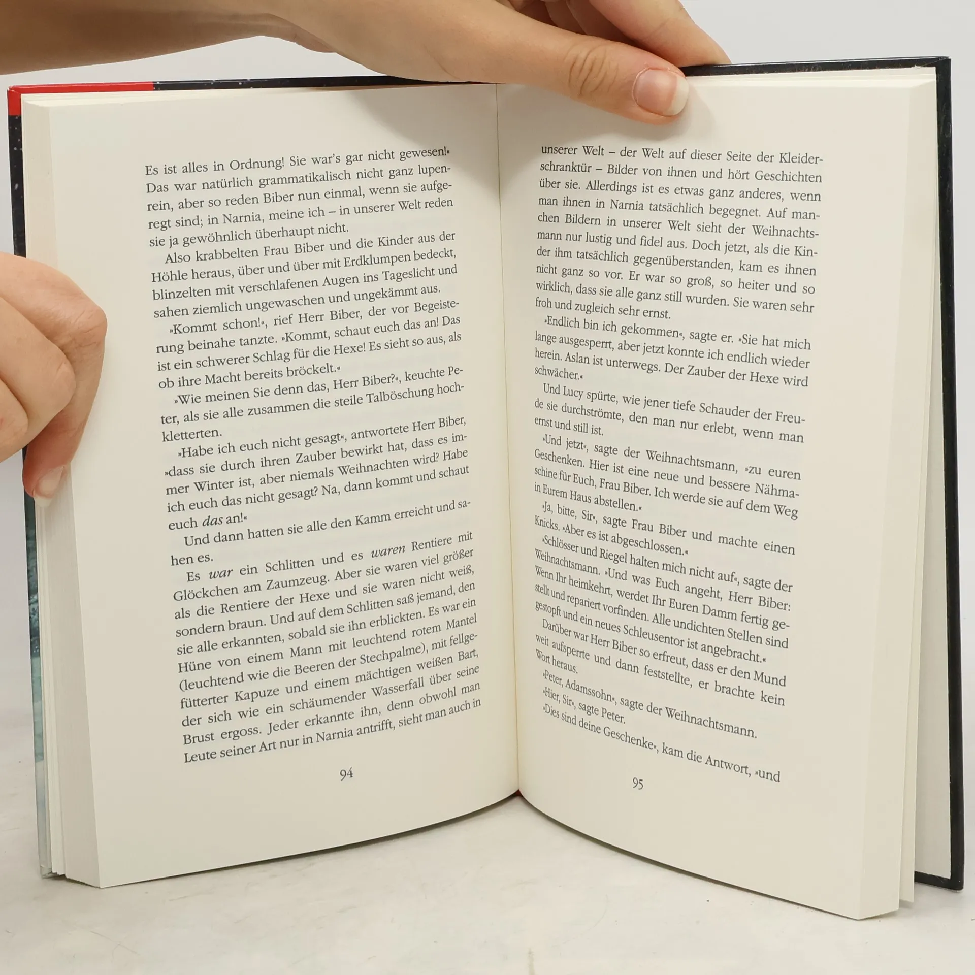Als London im zweiten Weltkrieg von Luftangriffen bedroht wird, müssen die vier Geschwister Peter, Susan, Edmund und Lucy die Stadt verlassen und vorübergehend ins Landhaus des betagten Professors Digory Kirke ziehen. Dort stoßen die Kinder eines Tages auf ein leeres Zimmer, in dem sich ein alter Wandschrank befindet. Dieser Schrank entpuppt sich als Tor zu einer anderen Welt -- dem geheimnisvollen Land Narnia. In Narnia begegnen den Kindern sprechende Tiere, und die wunderlichsten Dinge geschehen. Der edle Löwe Aslan bittet die Geschwister um Hilfe im Kampf gegen die weiße Hexe, die das Land mit dem Fluch des ewigen Winters belegt hat. Eine Prophezeiung hat vorhergesagt, dass es vier Kindern aus unserer Welt gelingen wird, Narnia zu befreien ...