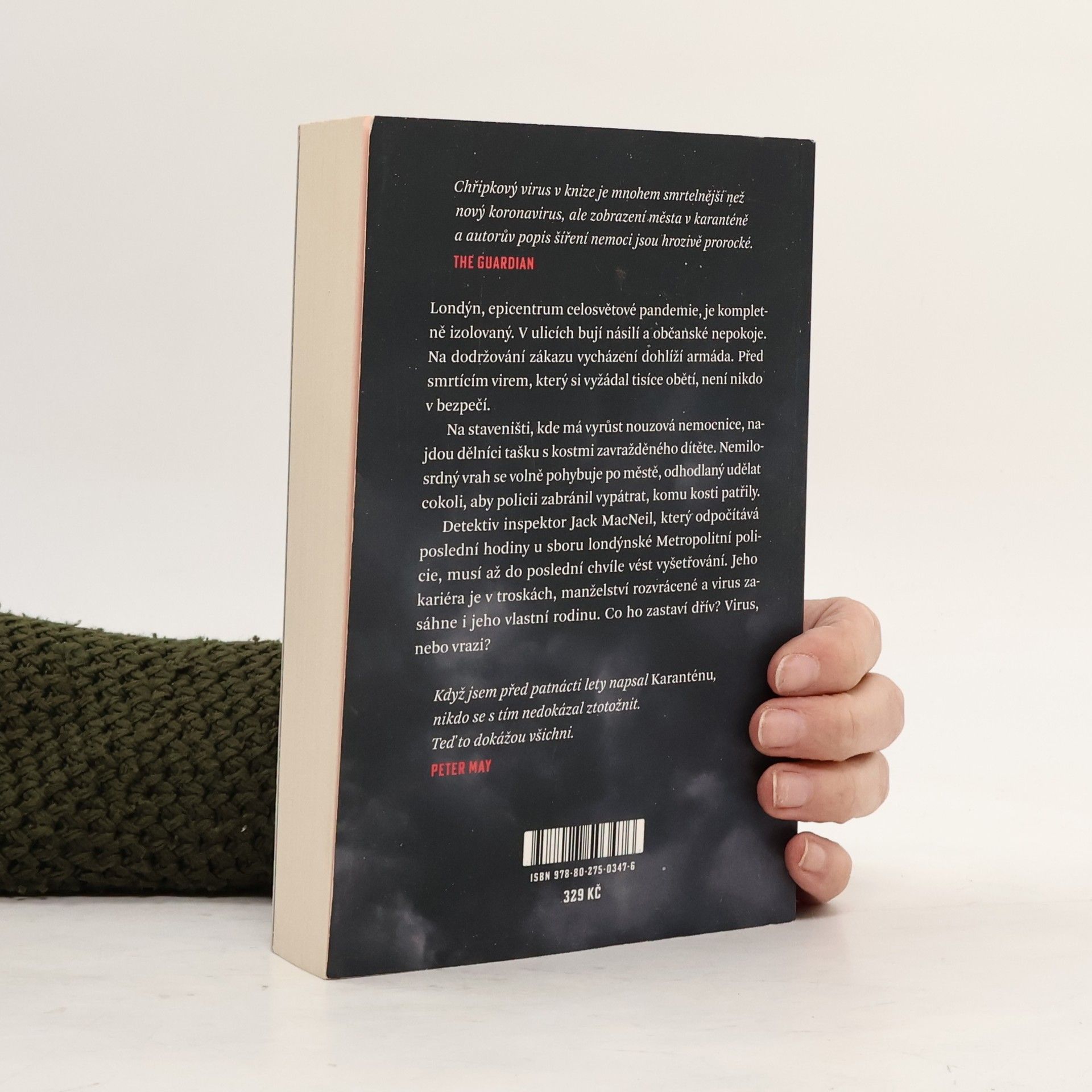 Thriller, který předpověděl celosvětovou pandemii. Londýn, epicentrum celosvětové pandemie, je kompletně izolovaný. V ulicích bují násilí a občanské nepokoje. Na dodržování zákazu vycházení dohlíží armáda. Před smrtícím virem, který si vyžádal tisíce obětí, není nikdo v bezpečí. Na staveništi, kde má vyrůst nouzová nemocnice, najdou dělníci tašku s kostmi zavražděného dítěte. Nemilosrdný vrah se volně pohybuje po městě, odhodlaný udělat cokoli, aby policii zabránil vypátrat, komu kosti patřily. Inspektor Jack MacNeil, který odpočítává poslední hodiny u sboru londýnské Metropolitní policie, musí až do poslední chvíle vést vyšetřování. Jeho kariéra je v troskách, manželství rozvrácené a virus zasáhne i jeho vlastní rodinu. Co ho zastaví dřív? Virus, nebo vrazi?
