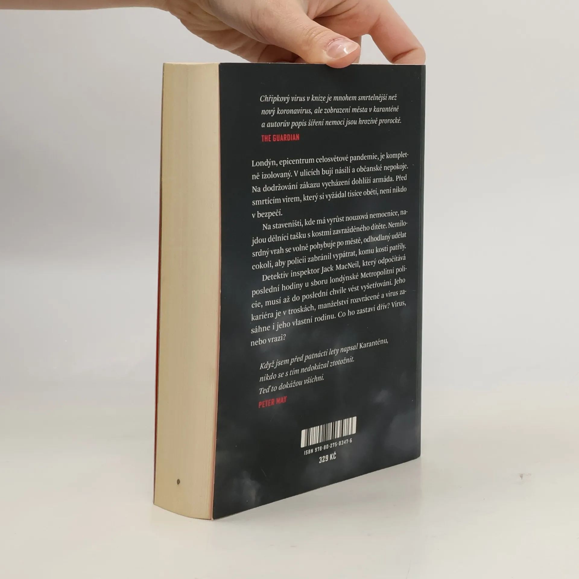 Thriller, který předpověděl celosvětovou pandemii. Londýn, epicentrum celosvětové pandemie, je kompletně izolovaný. V ulicích bují násilí a občanské nepokoje. Na dodržování zákazu vycházení dohlíží armáda. Před smrtícím virem, který si vyžádal tisíce obětí, není nikdo v bezpečí. Na staveništi, kde má vyrůst nouzová nemocnice, najdou dělníci tašku s kostmi zavražděného dítěte. Nemilosrdný vrah se volně pohybuje po městě, odhodlaný udělat cokoli, aby policii zabránil vypátrat, komu kosti patřily. Inspektor Jack MacNeil, který odpočítává poslední hodiny u sboru londýnské Metropolitní policie, musí až do poslední chvíle vést vyšetřování. Jeho kariéra je v troskách, manželství rozvrácené a virus zasáhne i jeho vlastní rodinu. Co ho zastaví dřív? Virus, nebo vrazi?