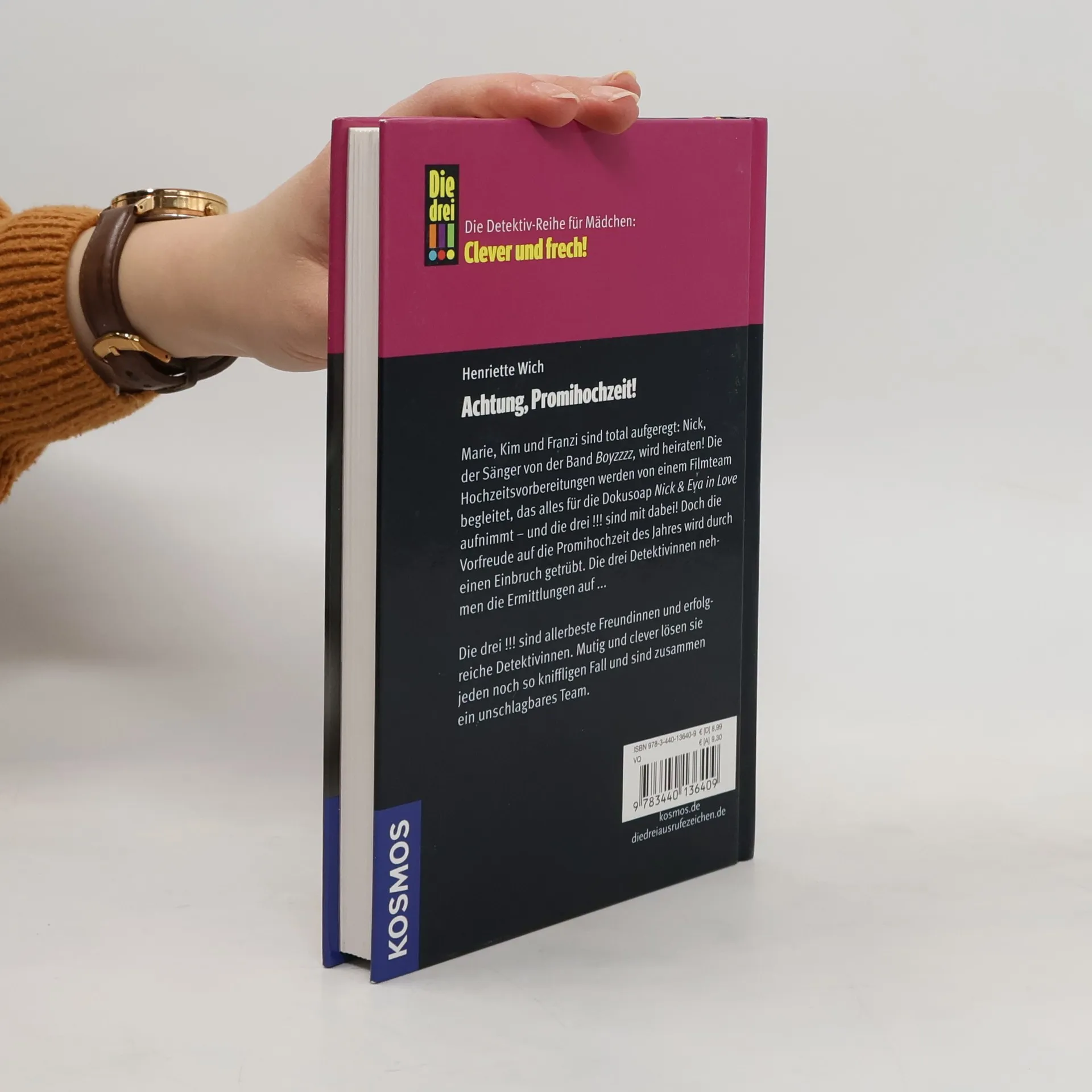 Kim, Franziska und Marie sind „Die drei !!!“. Mutig und clever ermitteln die drei Mädchen und sind jedem Fall gewachsen. Marie, Kim und Franzi sind total aufgeregt: Nick, der Sänger von „Boyzzzz“ wird heiraten! Die Hochzeitsvorbereitungen werden von einem Filmteam begleitet, die alles für die Dokusoap „Nick und Eva in love“ aufnehmen - und die drei !!! sind mit dabei! Doch die Vorfreude auf die Promihochzeit des Jahres wird getrübt - und „Die drei !!!“ nehmen die Ermittlungen auf ... Neben der spannenden Detektivarbeit müssen Kim, Franzi und Marie auch immer wieder das Abenteuer „Freundschaft“ bestehen. Es ist nämlich gar nicht so leicht, drei völlig verschiedene Meinungen unter einen Hut zu bringen. Mutig und clever stellen sich „Die drei !!!“ der Herausforderung und sind gemeinsam ein unschlagbares Team!