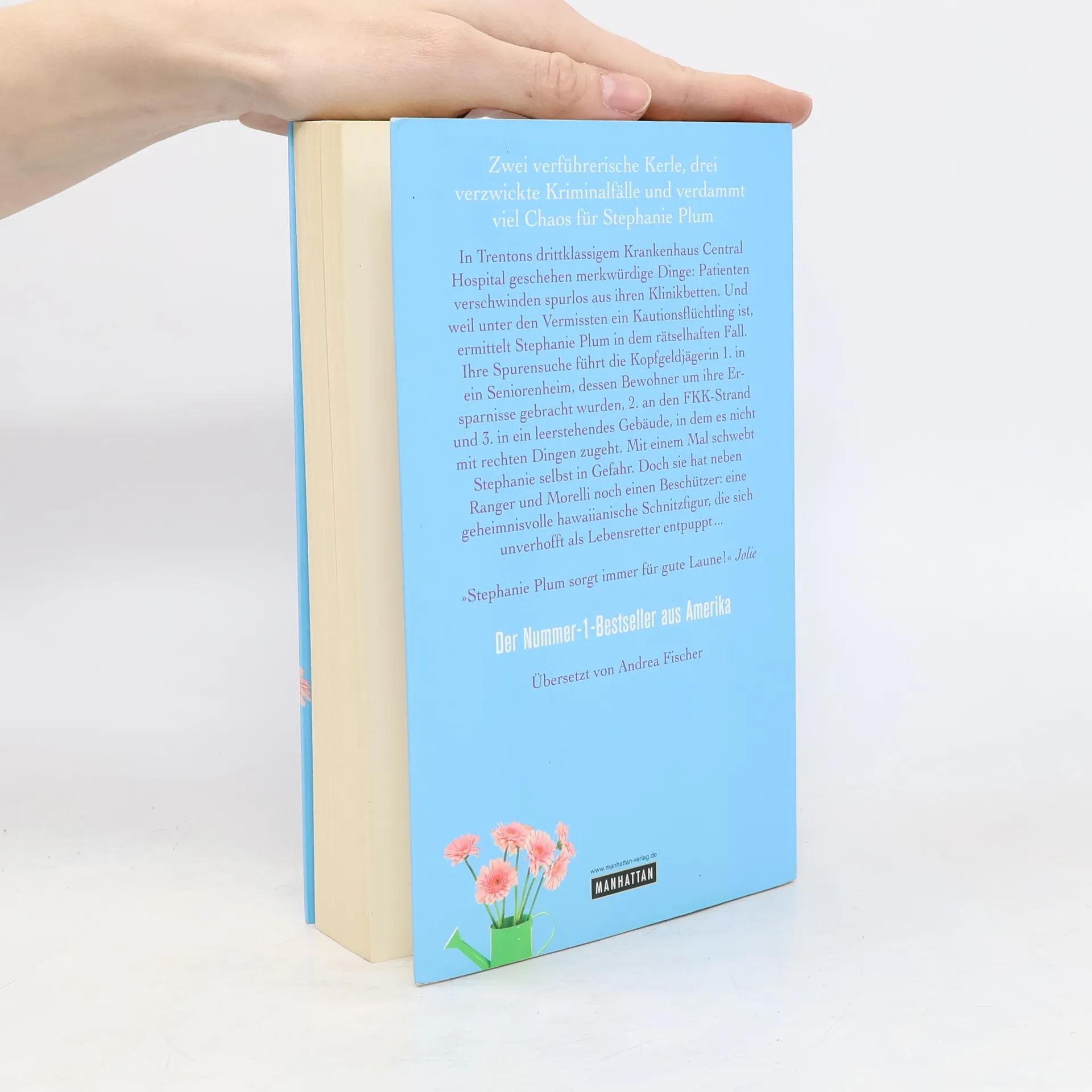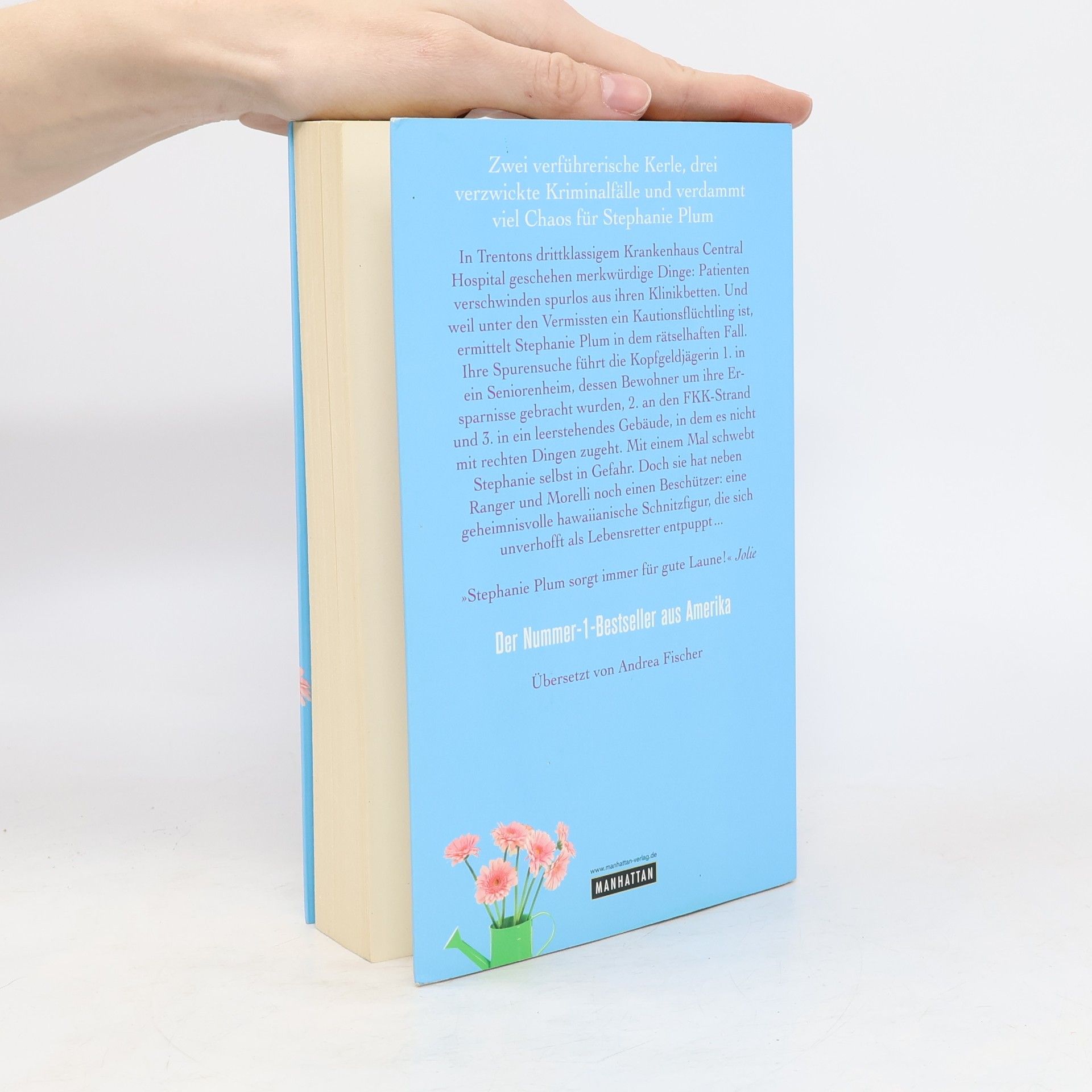 Zusammen küsst man weniger allein! In Trentons drittklassigem Krankenhaus Central Hospital geschehen merkwürdige Dinge: Patienten verschwinden spurlos aus ihren Klinikbetten. Und weil unter den Vermissten ein Kautionsflüchtling ist, ermittelt Stephanie Plum in dem rätselhaften Fall. Ihre Spurensuche führt die Kopfgeldjägerin 1. in ein Seniorenheim, dessen Bewohner um ihre Ersparnisse gebracht wurden, 2. an den FKK-Strand und 3. in ein leerstehendes Gebäude, in dem es nicht mit rechten Dingen zugeht. Mit einem Mal schwebt Stephanie selbst in Gefahr. Doch sie hat neben Ranger und Morelli einen dritten Beschützer: eine geheimnisvolle hawaiianische Schnitzfigur, die sich unverhofft als Lebensretter entpuppt …