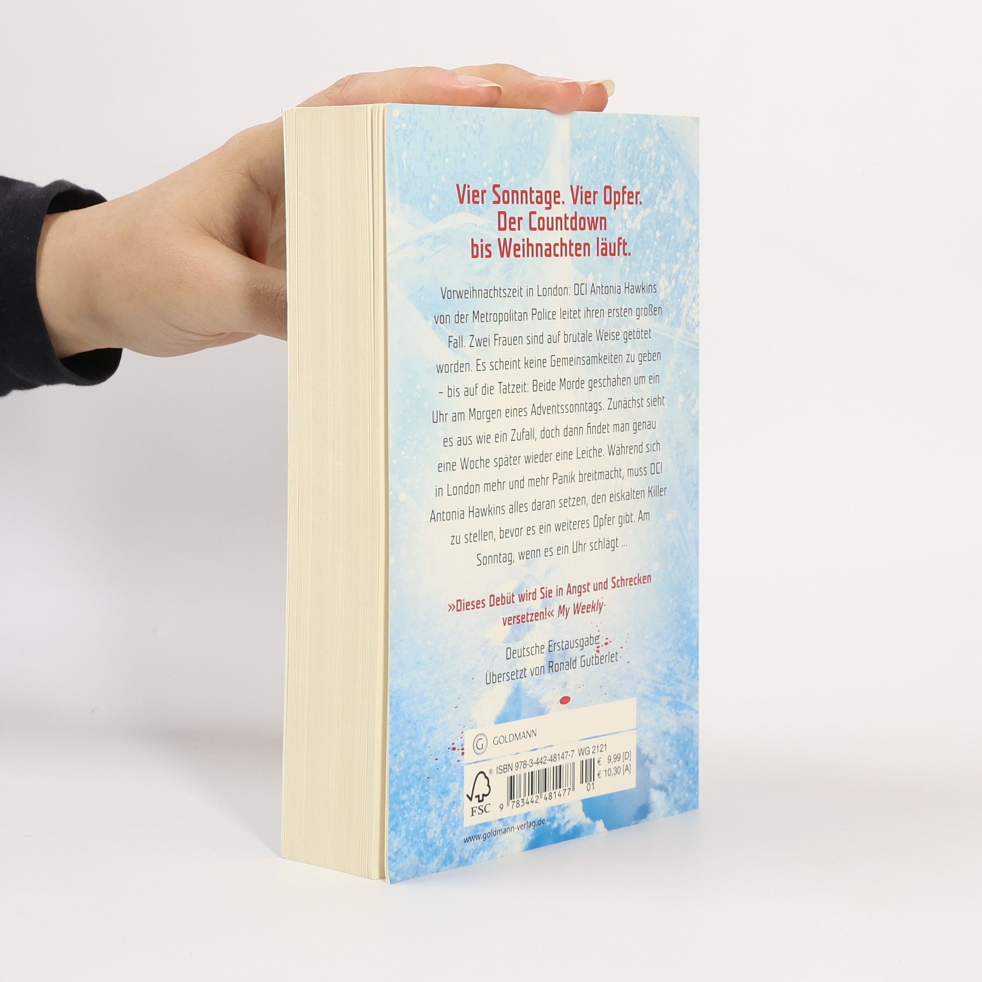 Vorweihnachtszeit in London: DCI Antonia Hawkins von der Metropolitan Police leitet ihren ersten großen Fall. Zwei Frauen sind auf brutale Weise getötet worden. Es scheint keine Gemeinsamkeiten zu geben – bis auf die Tatzeit: Beide Morde geschahen um ein Uhr am Morgen eines Adventssonntags. Zunächst sieht es aus wie ein Zufall – doch dann bringt eine neue Woche eine neue Leiche. Während sich in London mehr und mehr Panik breitmacht, muss DCI Antonia Hawkins einen eiskalten Killer finden, bevor es ein weiteres Opfer gibt. Am Sonntag, wenn es ein Uhr schlägt ...