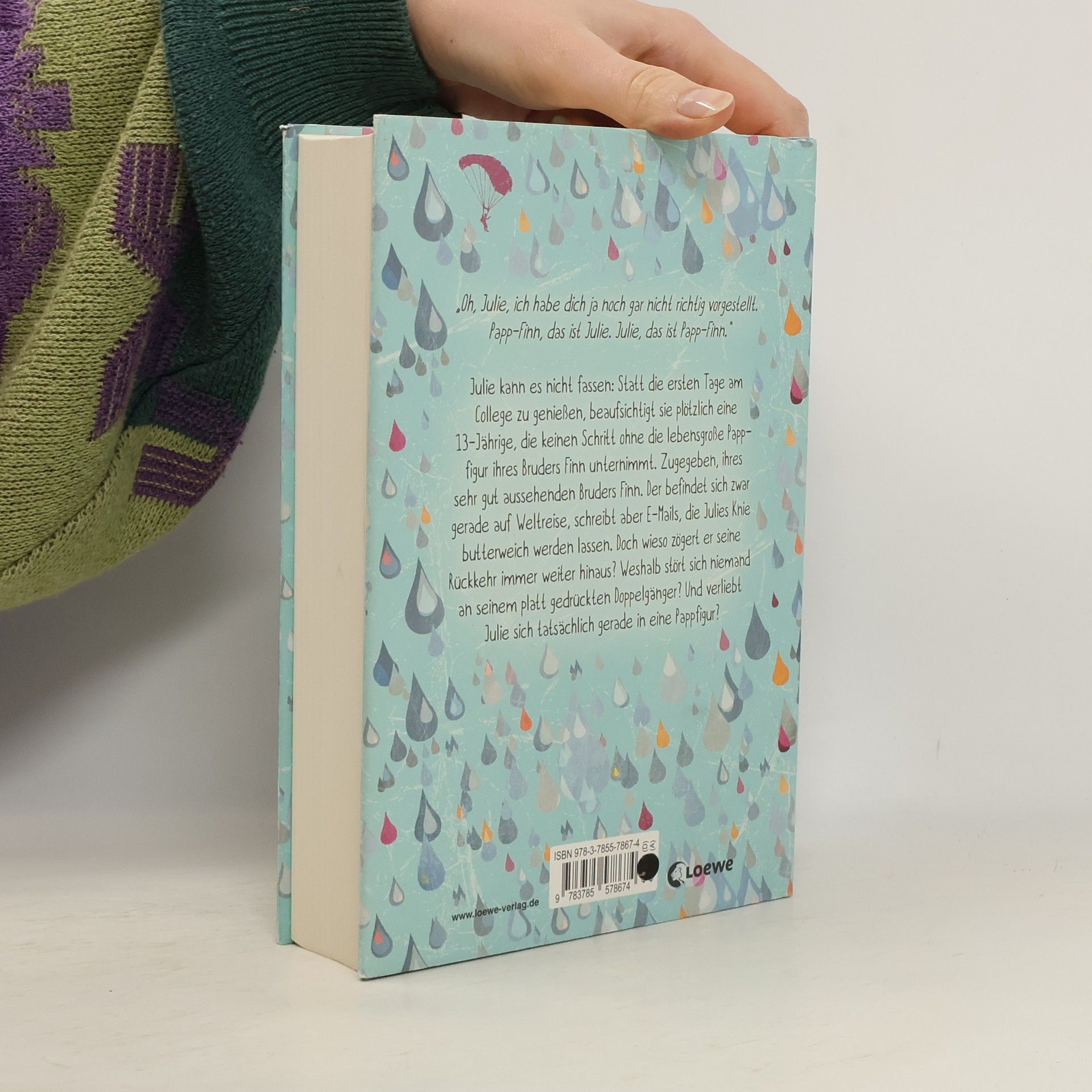 Julie kann es nicht fassen: Statt die ersten Tage am College zu genießen, beaufsichtigt sie plötzlich eine 13-Jährige, die keinen Schritt ohne die lebensgroße Pappfigur ihres Bruders Finn unternimmt. Zugegeben, ihres sehr gut aussehenden Bruders Finn. Der befindet sich zwar gerade auf Weltreise, schreibt aber E-Mails, die Julies Knie butterweich werden lassen. Doch wieso zögert er seine Rückkehr immer weiter hinaus? Weshalb stört sich niemand an seinem platt gedrückten Doppelgänger? Und verliebt Julie sich tatsächlich gerade in eine Pappfigur?