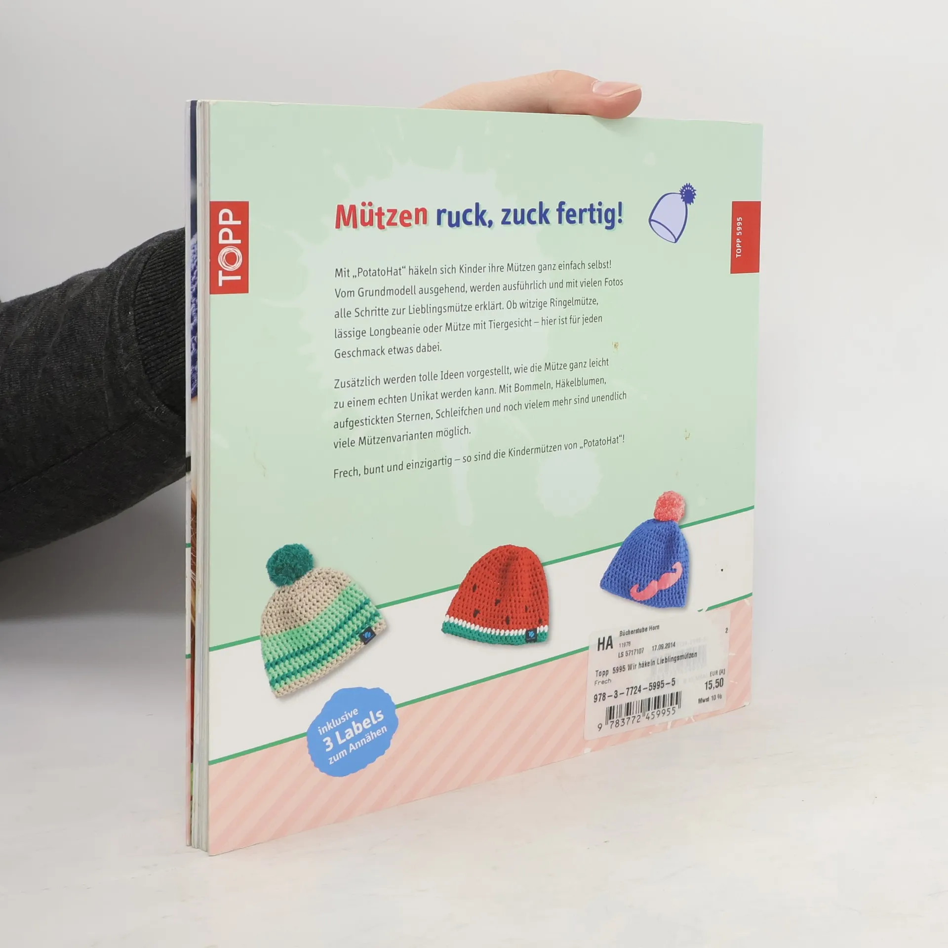 PotatoHat. Wir häkeln Lieblingsmützen. Eine Mütze – viele Varianten. Kinder häkeln ihre Mützen selbst! Das einzige Mützenhäkelbuch für Kinder auf dem Markt. Großer Einführungsteil und zahlreiche Schrittfotos. 96 Seiten, 21,8 x 23 cm, Flexobroschur