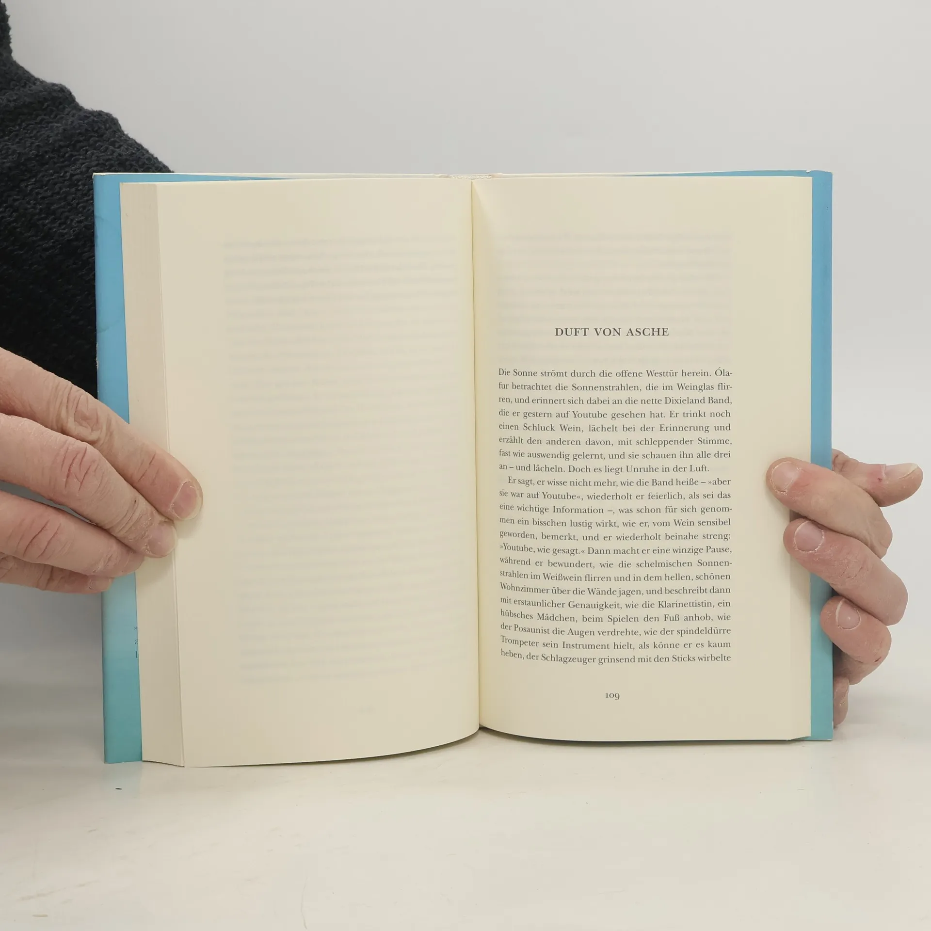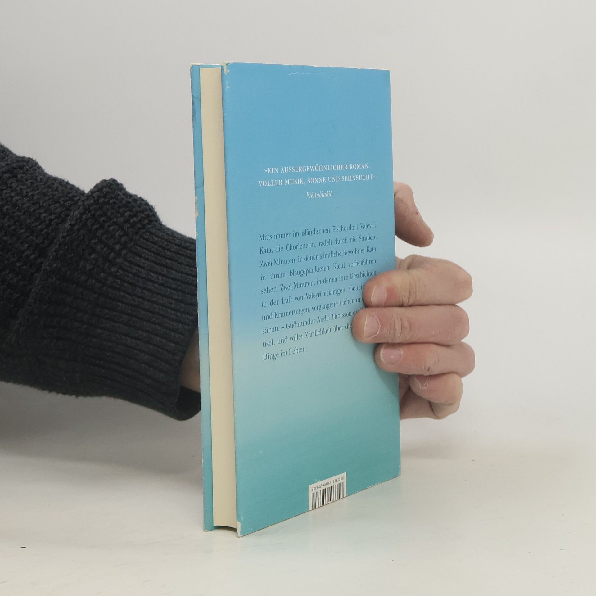 In Valeyri, einem isländischen Fischerdorf, liegen an diesem warmen Mittsommertag Erwartung und freudige Erregung in der Luft: Abends werden die meisten Einwohner bei dem Chorkonzert singen, das Kata dirigiert. Sie radelt durch die Straßen - in zwei Minuten, in denen alle Kata in ihrem blaugepunkteten Kleid vorbeifahren sehen. Zwei Minuten, in denen Geheimnisse und Erinnerungen, vergangene Lieben und Sehnsüchte sich zu einem vielstimmigen Gesang verbinden und in der Luft von Valeyri klingen: Die von Kalli, dem Solisten, der allein in seiner Werkstatt sitzt, umgeben von Geräten und Erinnerungen. Vom alten Papageitaucher-Lalli und seiner Schwester Lara, die heute zum ersten Mal seit Jahren wieder miteinander sprechen werden. Und von Pastor Sæmundur, der ein Bier aufmacht, während Gut und Böse um seine Seele kämpfen. Poetisch und voller Zärtlichkeit erzählt Guðmundur Andri Thorsson über die wichtigsten Dinge im Leben.