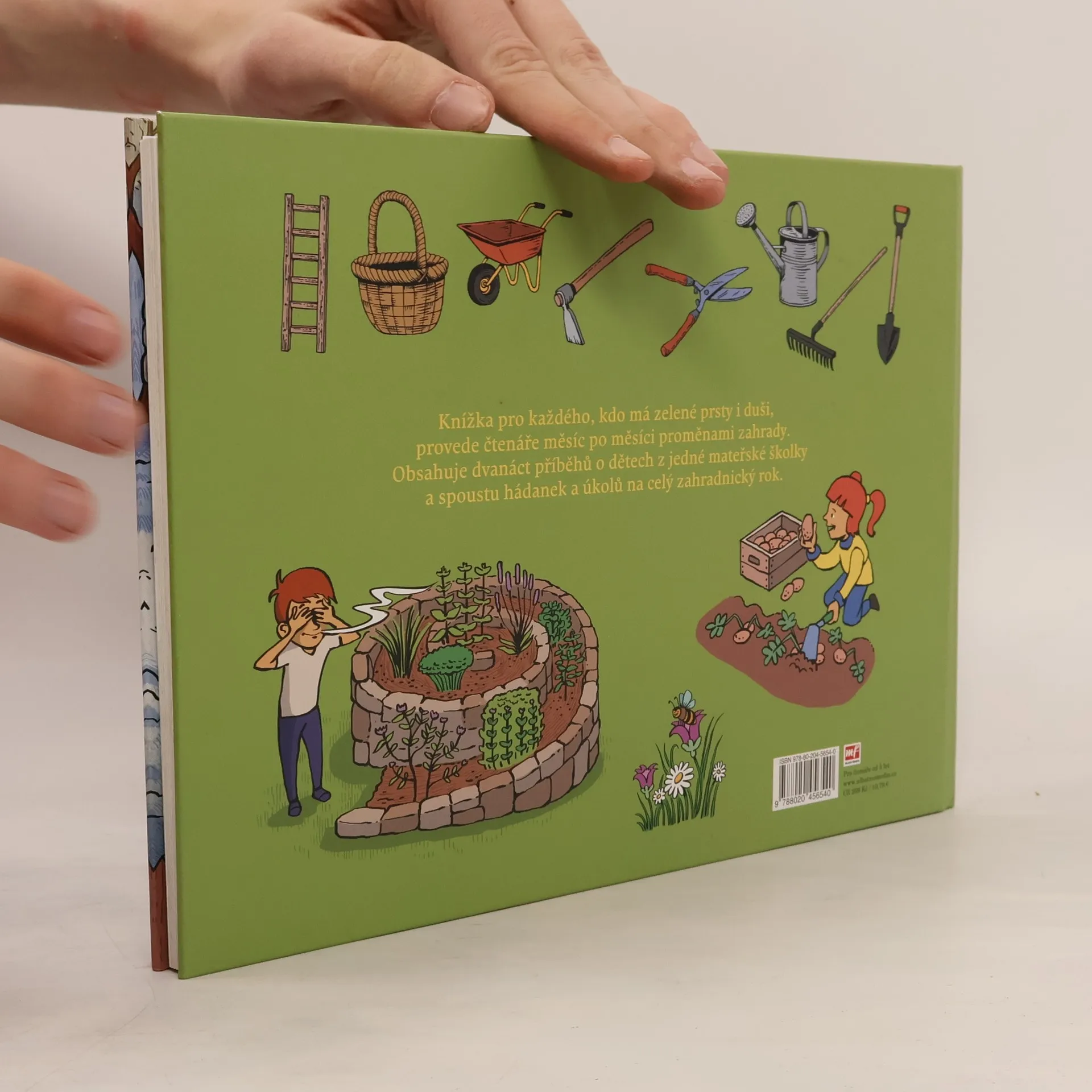 Knížka pro každého, kdo má zelené prsty i duši, provede čtenáře měsíc po měsíci proměnami zahrady. Obsahuje dvanáct příběhů o dětech z jedné přátelské mateřské školky a spoustu hádanek a úkolů na celý zahradnický rok. Na školní zahradu vyráží za každého počasí devět malých zahradníků. Mravenec Míra se nestačí divit, kolik práce zastanou, a brzo je od sebe začne rozeznávat. Co všechno se od nich může společně s dětmi naučit? Třeba jak se starat o kompost, k čemu slouží bylinková spirála, jak správně založit záhon a mnoho dalšího. Vše má svůj čas a na zahradě je co dělat po celý rok. Stačí jenom dávat pozor a zázraky přírody budete mít na dosah!
