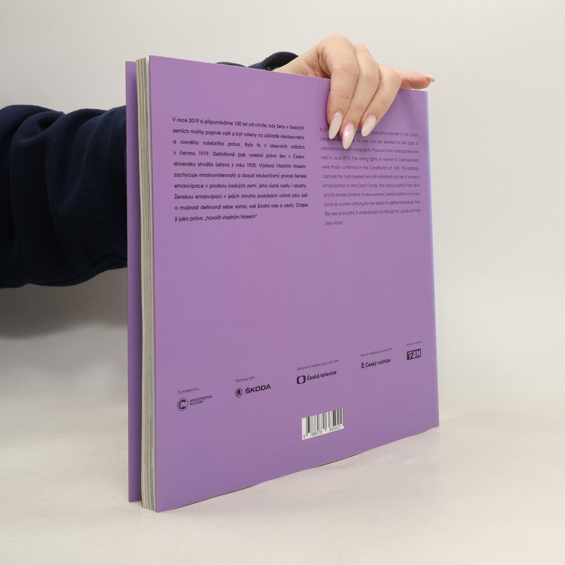 Kniha vychází u příležitosti výstavy Národního muzea Vlastním hlasem, která připomíná sto let volebního práva žen v Československu. V roce 2019 si připomínáme 100 let od chvíle, kdy ženy v českých zemích mohly poprvé volit a být voleny na základě všeobecného a rovného volebního práva. Bylo to v obecních volbách 15. června 1919. Definitivně pak volební právo žen v Československu stvrdila ústava z roku 1920. Česko-anglická publikace s bohatým obrazovým doprovodem, vydaná ke stejnojmenné výstavě, zachycuje mnohovrstevnatý a dosud neukončený proces ženské emancipace v prostoru českých zemí, jeho různé cesty i obsahy. Ženskou emancipaci v jejích mnoha podobách vnímá jako úsilí o možnost definovat sebe sama, své životní role a cesty. Chápe ji jako právo "hovořit vlastním hlasem". Dobové obsahy a limity ženské emancipace ukazuje na 26 příbězích konkrétních známých, ale i méně známých žen - různé národnosti, pocházejících z různého sociálního prostředí a žijících v různé době. Tyto ženy ve výstavě společně "vyprávějí" příběh ženské emancipace. Příběh o překonávání společenských bariér, které omezují lidský potenciál žen.