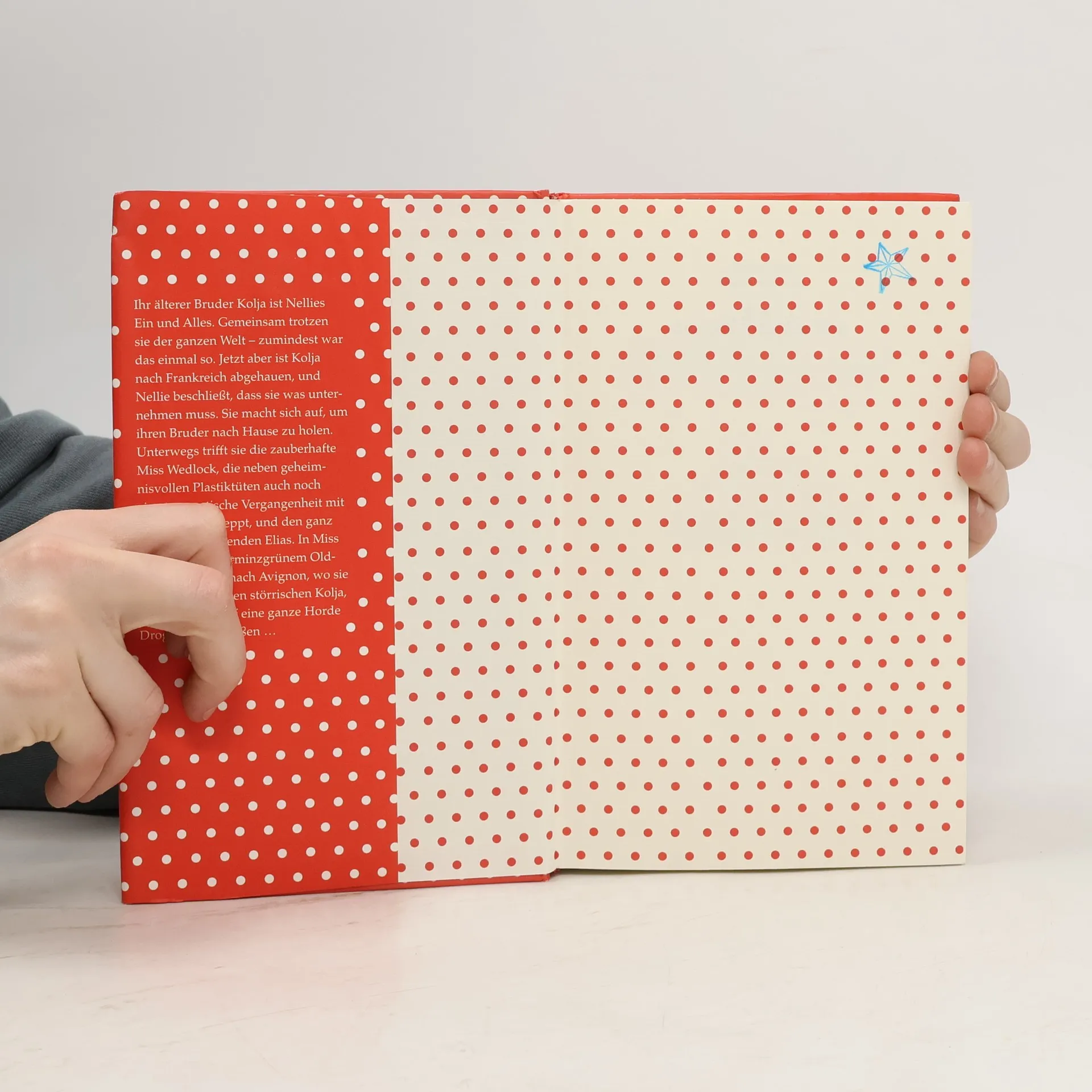 Ihr älterer Bruder Kolja ist Nellies Ein und Alles. Gemeinsam trotzen sie der ganzen Welt – zumindest war das einmal so. Jetzt aber ist Kolja nach Frankreich abgehauen, und Nellie beschließt, dass sie was unternehmen muss. Sie macht sich auf, um ihren Bruder nach Hause zu holen. Unterwegs trifft sie die zauberhafte Miss Wedlock, die neben geheimnisvollen Plastiktüten auch noch eine traumatische Vergangenheit mit sich herumschleppt, und den ganz und gar hinreißenden Elias. In Miss Wedlocks pfefferminzgrünem Oldtimer düsen sie nach Avignon, wo sie nicht nur auf einen störrischen Kolja, sondern auch auf eine ganze Horde Drogendealer stoßen …