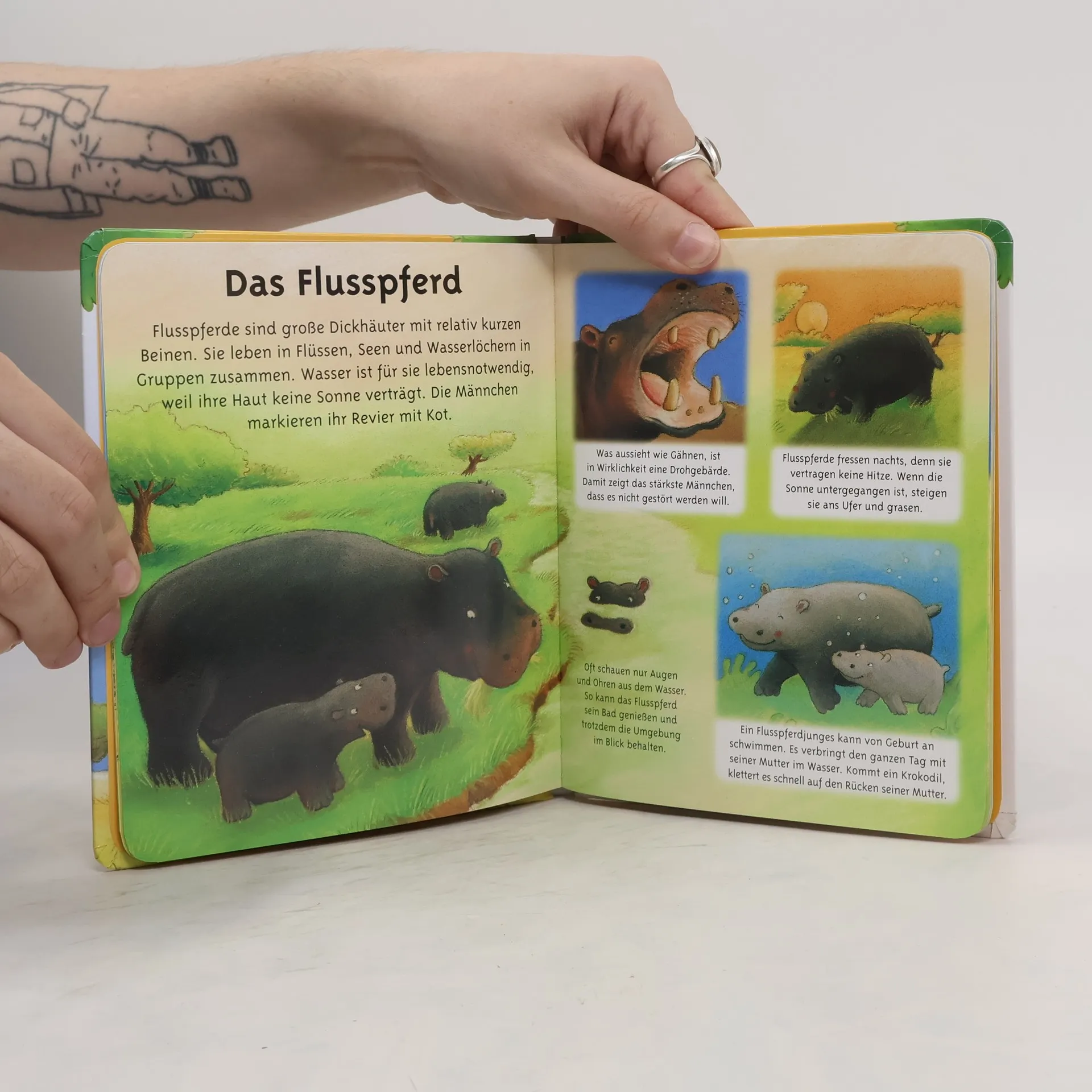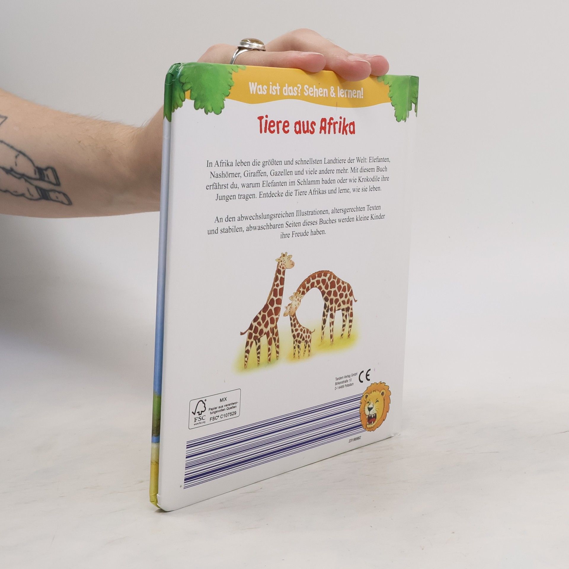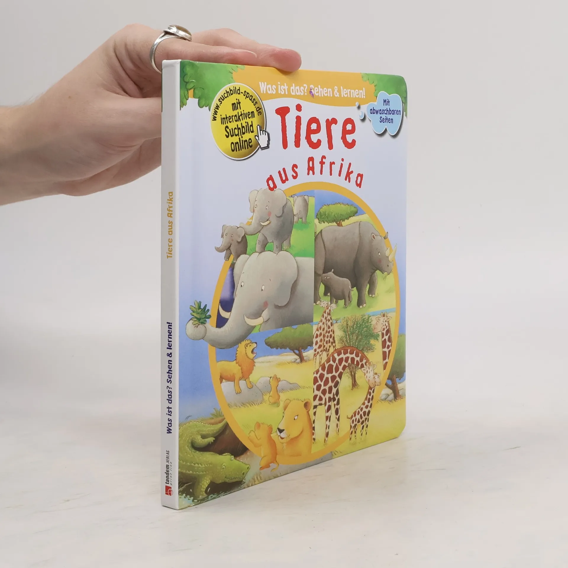 In Afrika leben die größten und schnellsten Landtiere der Welt: Elefanten, Nashörner, Giraffen, Gazellen und viele andere mehr. Mit diesem Buch erfährst du, warum Elefanten in Schlamm baden oder wie Krokodile ihre Jungen tragen. Entdecke die Tiere Afrikas und lerne, wie sie leben. An den abwechslungsreichen Illustrationen, altersgerechten Texten und stabilen, abwaschbaren Seiten dieses Buches werden kleine Kinder ihre Freude haben.
